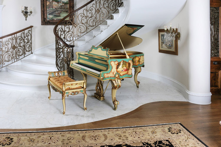 How many professionally designed homes have you seen with exquisite period decor, only to see a sterile, generic black baby grand piano in the corner? Often the largest and most visible piece in a room, the piano generally gets very little design consideration.