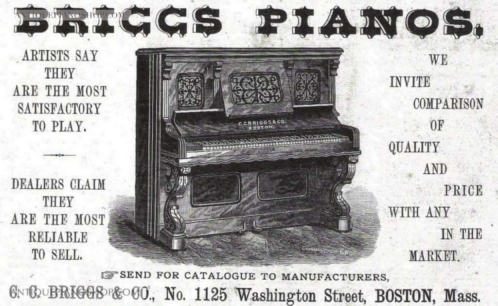 Charles C. Briggs was born in Boson in 1822, and began studying the art of piano manufacturing in 1858. After apprenticing with several renowned Boston makers, Briggs began building pianos under his own name in 1868. Briggs had a natural talent toward the design and construction of pianos and scale designs, and his pianos quickly became celebrated as one of the top Boston manufacturers.