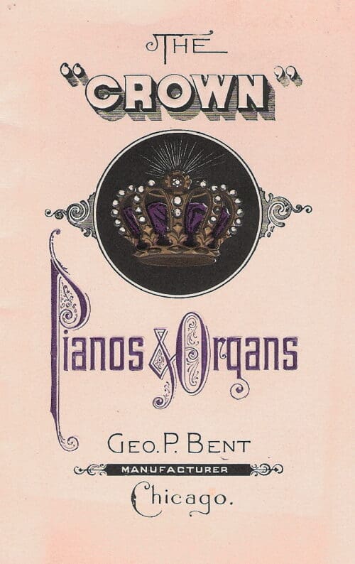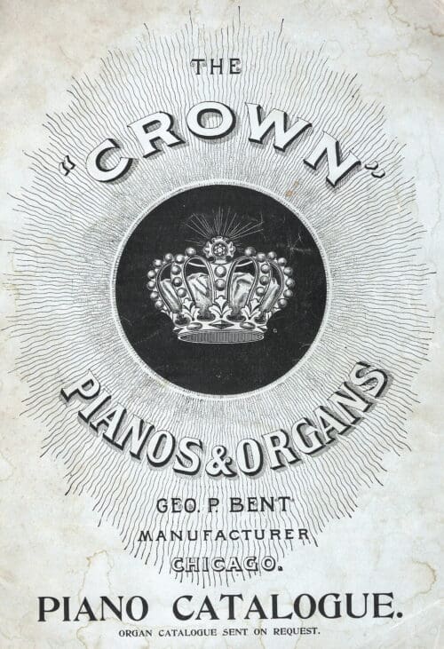 George P. Bent was one of the most well known piano and organ makers of the late 19th Century in America. Established in 1870, George P. Bent built pianos and organs under both his own name and also under the Crown and Concord brand names which were originally sold and distributed by Sears, Roebuck & Company through their mail order catalogs. Crown also built a successful line of player pianos under the “Combinola” brand name.