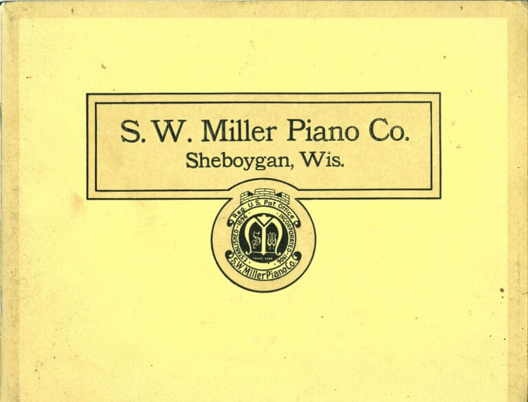 The S. W. Miller Company was housed in a “state of the art” factory which was located at 15th & Bluff Streets in Sheboygan. In addition to instruments sold under the “S. W. Miller” brand name, the firm also built a line of upright pianos under the “Eureka Piano” label and reproducing player pianos under the “Electora” label.