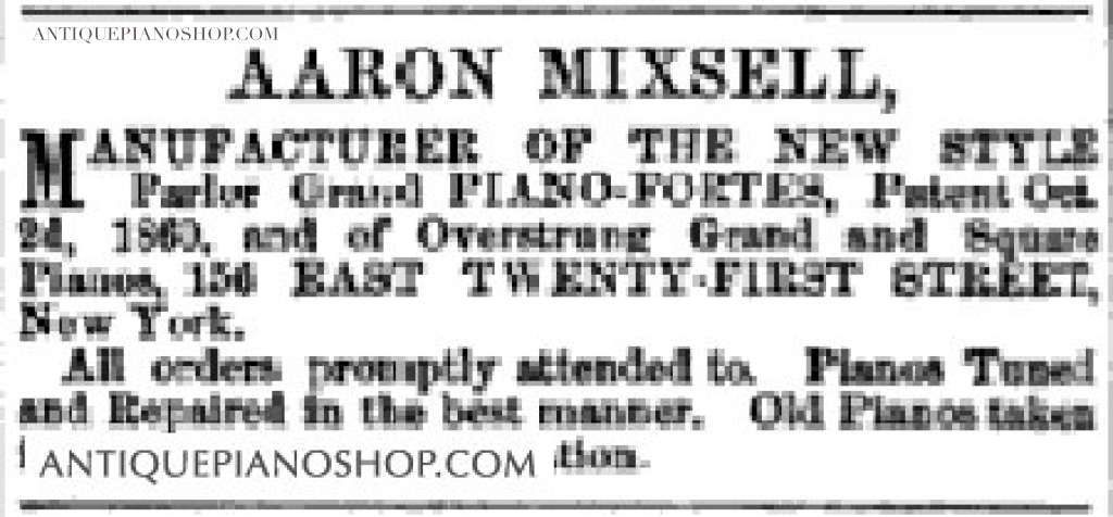 19th Century Advertisements For Mixsell & Company Piano Makers, New York City