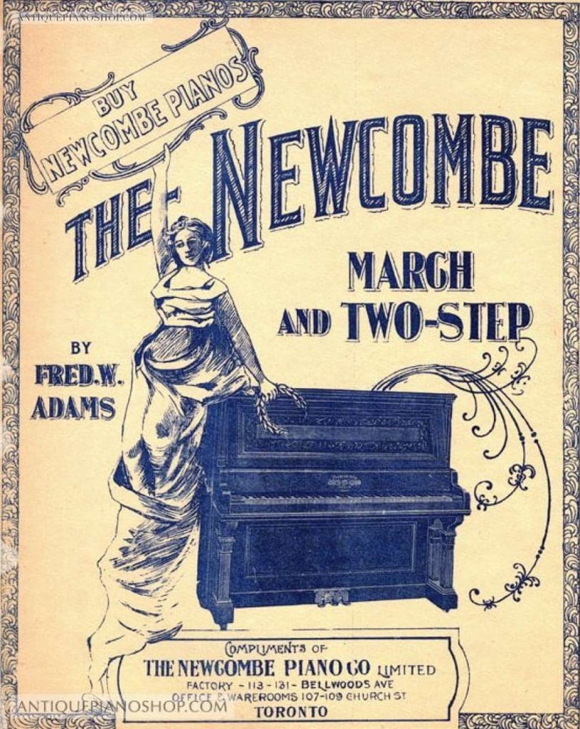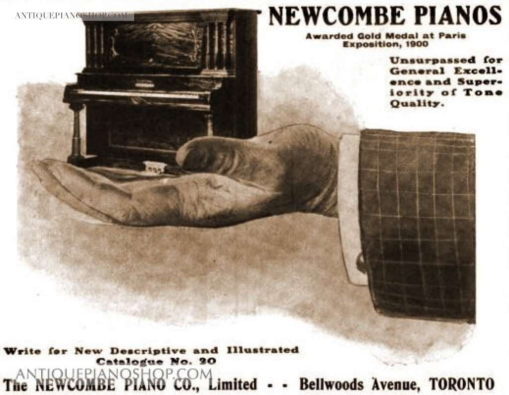 In 1878, Mr. Newcombe organized his new firm as “The Octavius Newcombe Piano Company”. In 1900, the name of the company was changed to “The Newcombe Piano Company”. Newcombe built very high quality, durable pianos and player pianos which were mainly distributed throughout Canada and the United States. The Newcombe factory burned in 1926, and production stopped. The Newcombe name was purchased by Willis & Company of Montreal, and they continued to build pianos under the Newcombe name until 1960.