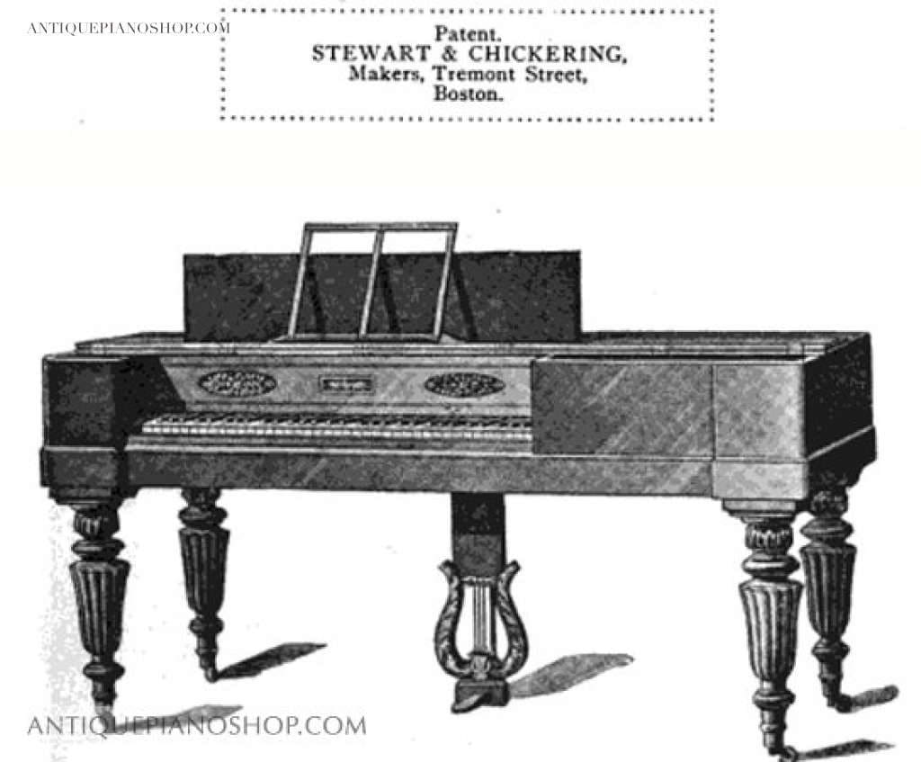 Chickering & Sons (not to be confused with Chickering Brothers) was the first piano manufacturer in America. Chickering quickly became one of the largest and most successful piano manufacturers of all time. The firm was originally established in Boston in 1823 by Jonas Chickering and his partner James Stewart under the name of Stewart & Chickering. From about 1830-1839, Chickering entered into partnership with John Mackay, building instruments under the label of Chickering & Mackay. John Mackay was a sea captain that exported Chickering pianos to South America, and in return, would bring back ships full of sweet smelling rosewood and mahogany for piano building.