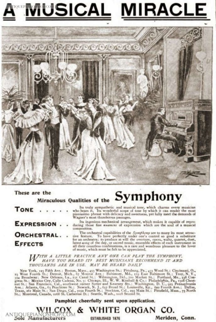 19th Century Advertisements For The “Symphony” Self Playing Reed Organ, Built By Wilcox & White