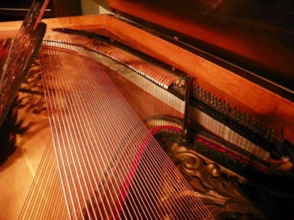 DEPOSITS: The restoration of this instrument has not been completed. A 30% deposit is required on instruments pending restoration. This deposit holds the instrument and keeps it from being offered to other clients, and it also makes that piano’s restoration a priority. Once we complete the restoration, we invite the client to visit our shop to see and hear the piano. If the client is unable to visit our shop, we will send professional photos and videos of the piano for review. The client then has the option of paying the balance and purchasing the piano, transferring their balance to another piano in our shop, or getting a full refund for their deposit. The client is never at risk.