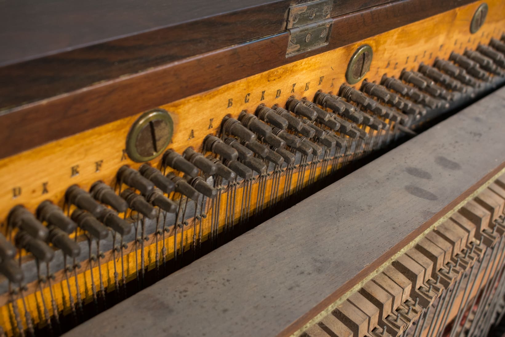 These early upright pianos have a light, delicate tone quality that is very pleasing to the ear. This instrument will be restored to like-new condition, both inside and out, with the restoration done with a historical perspective in mind.
