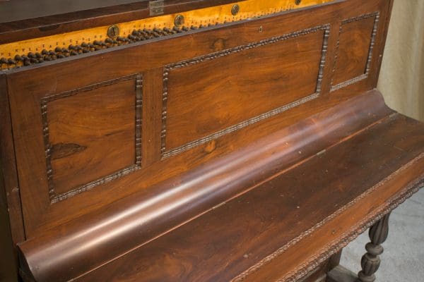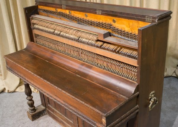 DEPOSITS: The restoration of this instrument has not been completed. A 30% deposit is required on instruments pending restoration. This deposit holds the instrument and keeps it from being offered to other clients, and it also makes that piano’s restoration a priority. Once we complete the restoration, we invite the client to visit our shop to see and hear the piano. If the client is unable to visit our shop, we will send professional photos and videos of the piano for review. The client then has the option of paying the balance and purchasing the piano, transferring their balance to another piano in our shop, or getting a full refund for their deposit. The client is never at risk.