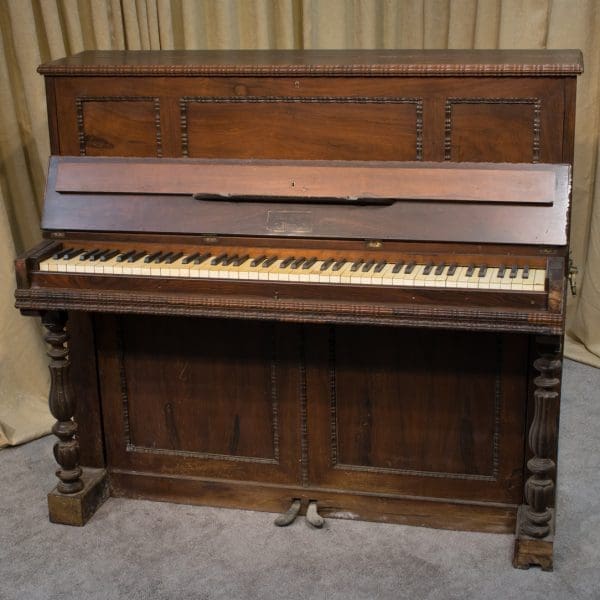 This is a beautiful Cottage-size upright piano by Pleyel circa about 1870. This is a smaller instrument which would have been popular in boudoirs and small cottages across Europe. Pleyel was a favorite of Frederic Chopin, and this instrument is very similar to Chopin’s own piano which he used to compose many of his masterpieces. This piano is made of beautiful Indian Rosewood and has an overall formal and delicate appearance.