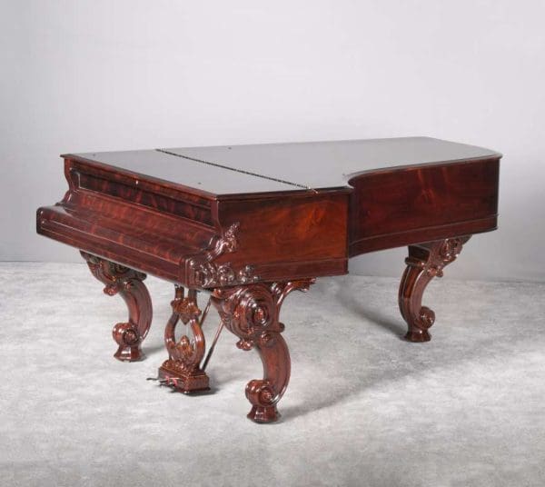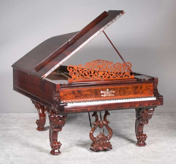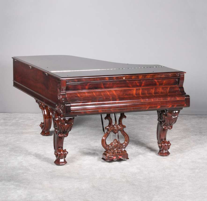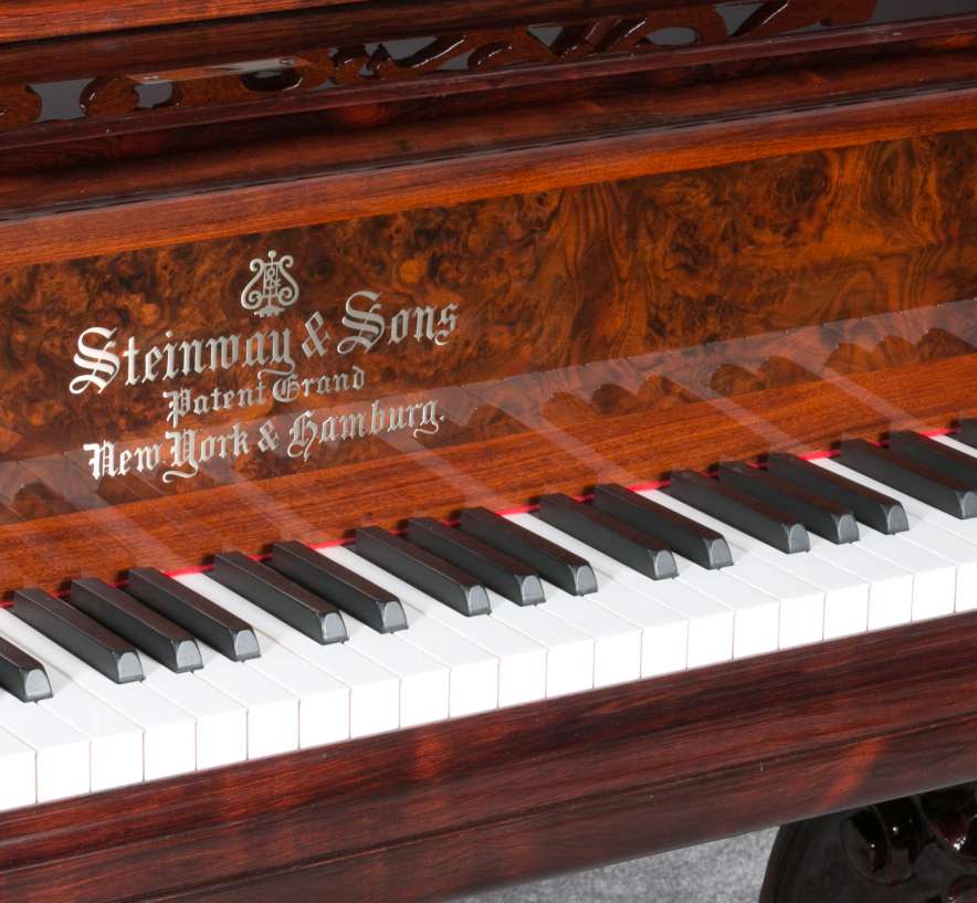 Steinway grand pianos this early are quite rare, and the majority of surviving instruments are not in playable condition. This instrument has been restored with an entirely new action of modern design so that it plays and sounds like a newer conventional concert grand piano. It is truly a spectacular instrument to see and hear.