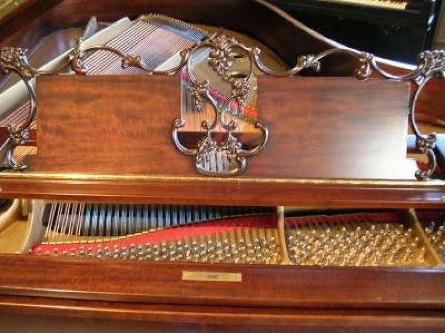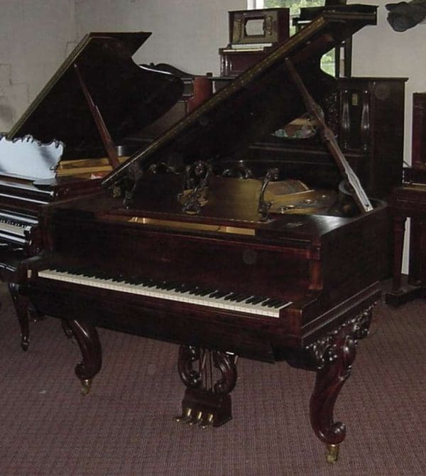 DEPOSITS: The restoration of this instrument has not been completed. A 30% deposit is required on instruments pending restoration. This deposit holds the instrument and keeps it from being offered to other clients, and it also makes that piano’s restoration a priority. Once we complete the restoration, we invite the client to visit our shop to see and hear the piano. If the client is unable to visit our shop, we will send professional photos and videos of the piano for review. The client then has the option of paying the balance and purchasing the piano, transferring their balance to another piano in our shop, or getting a full refund for their deposit. The client is never at risk.