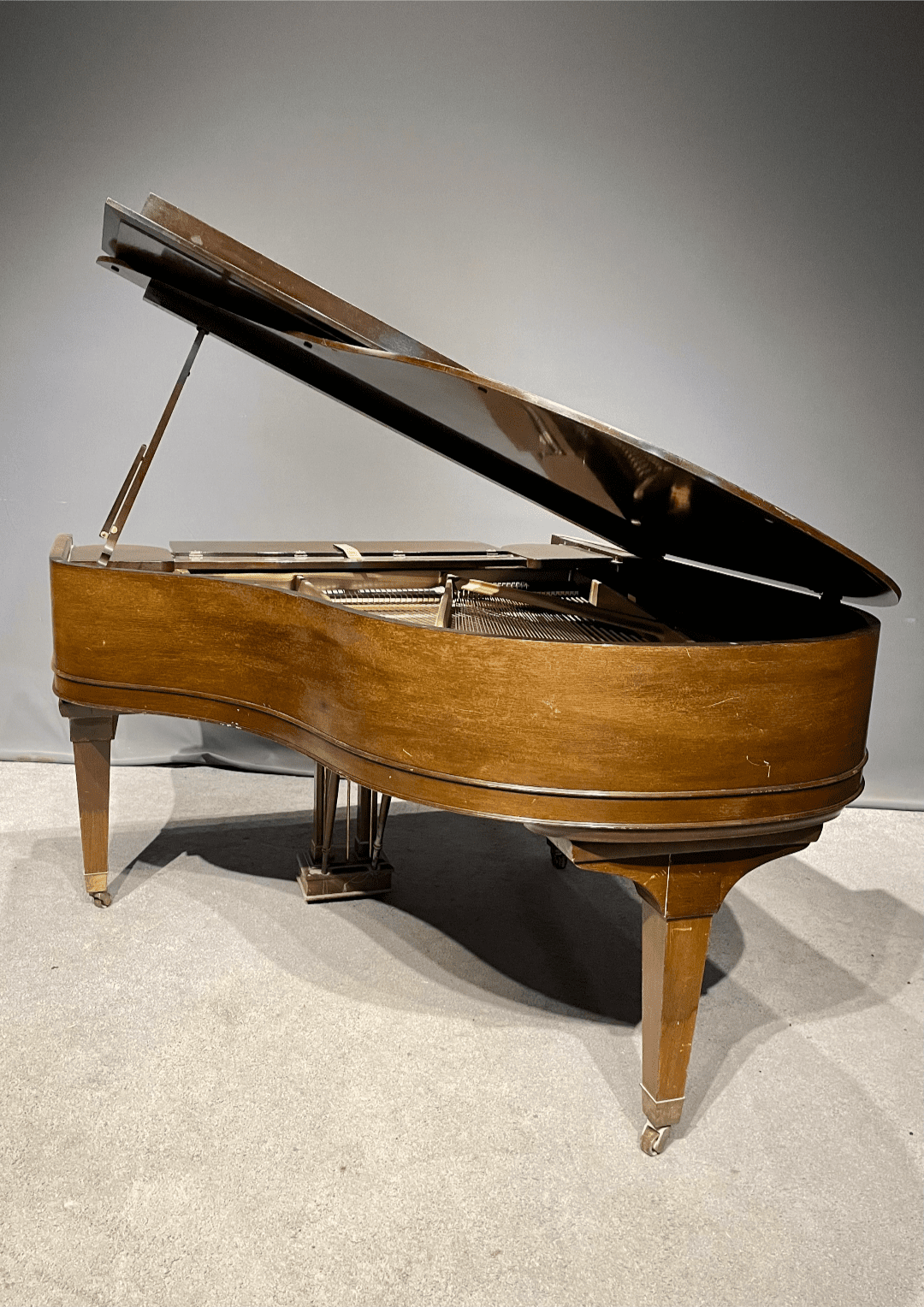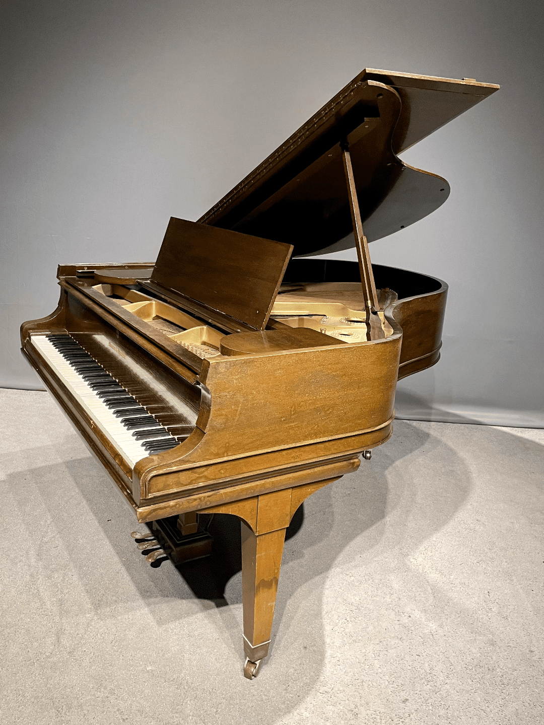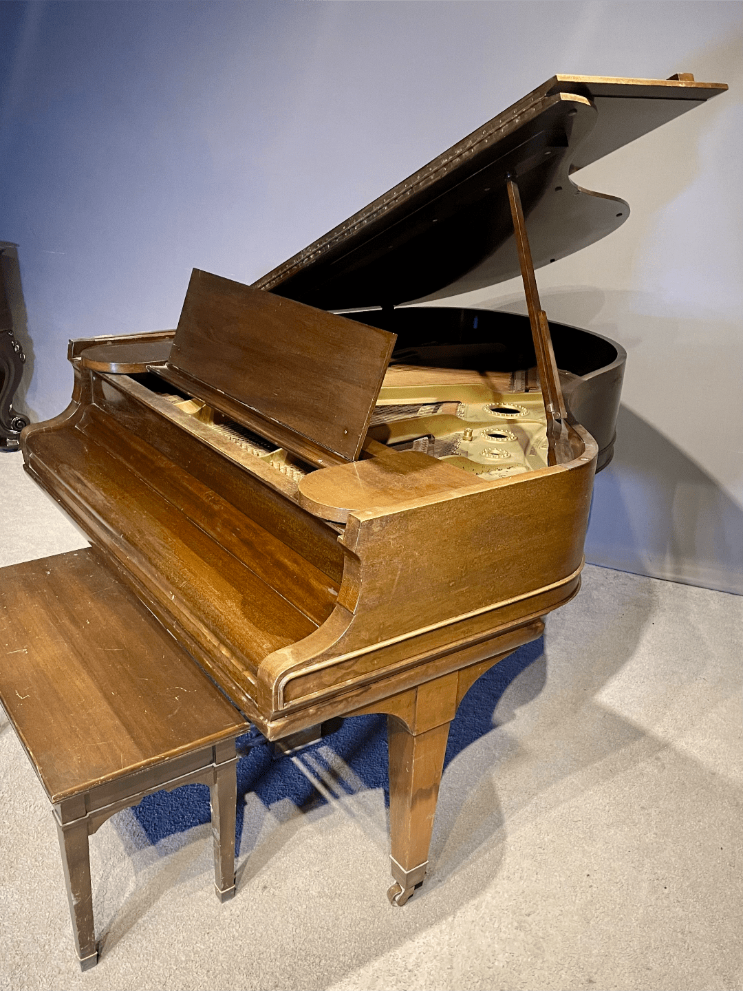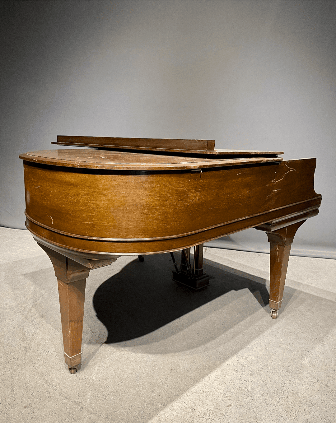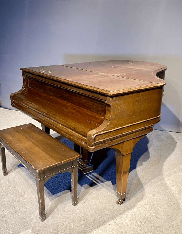 DEPOSITS: The restoration of this instrument has not been completed. A 30% deposit is required on instruments pending restoration. This deposit holds the instrument and keeps it from being offered to other clients, and it also makes that piano’s restoration a priority. Once we complete the restoration, we invite the client to visit our shop to see and hear the piano. If the client is unable to visit our shop, we will send professional photos and videos of the piano for review. The client then has the option of paying the balance and purchasing the piano, transferring their balance to another piano in our shop, or getting a full refund for their deposit. The client is never at risk.