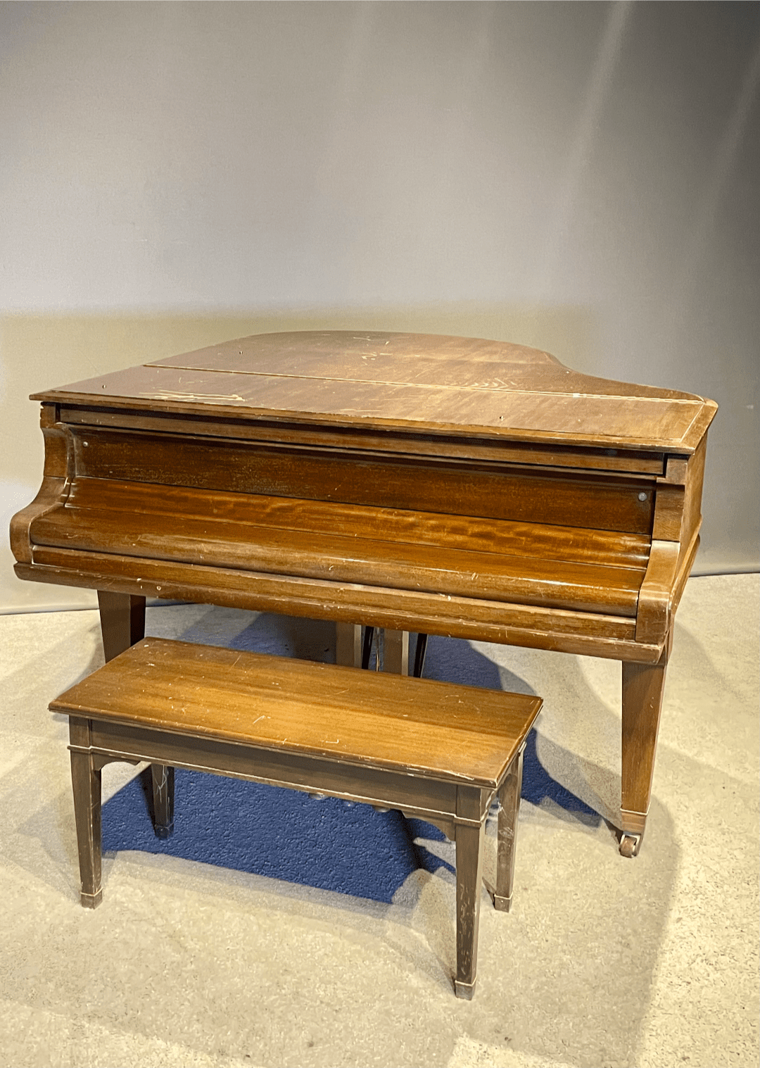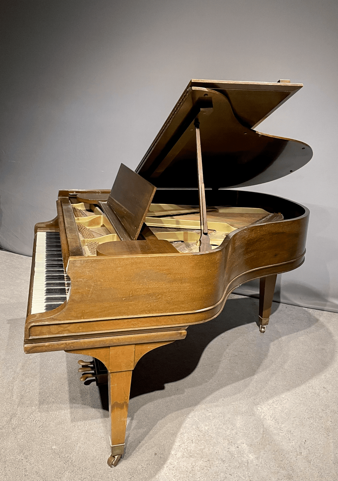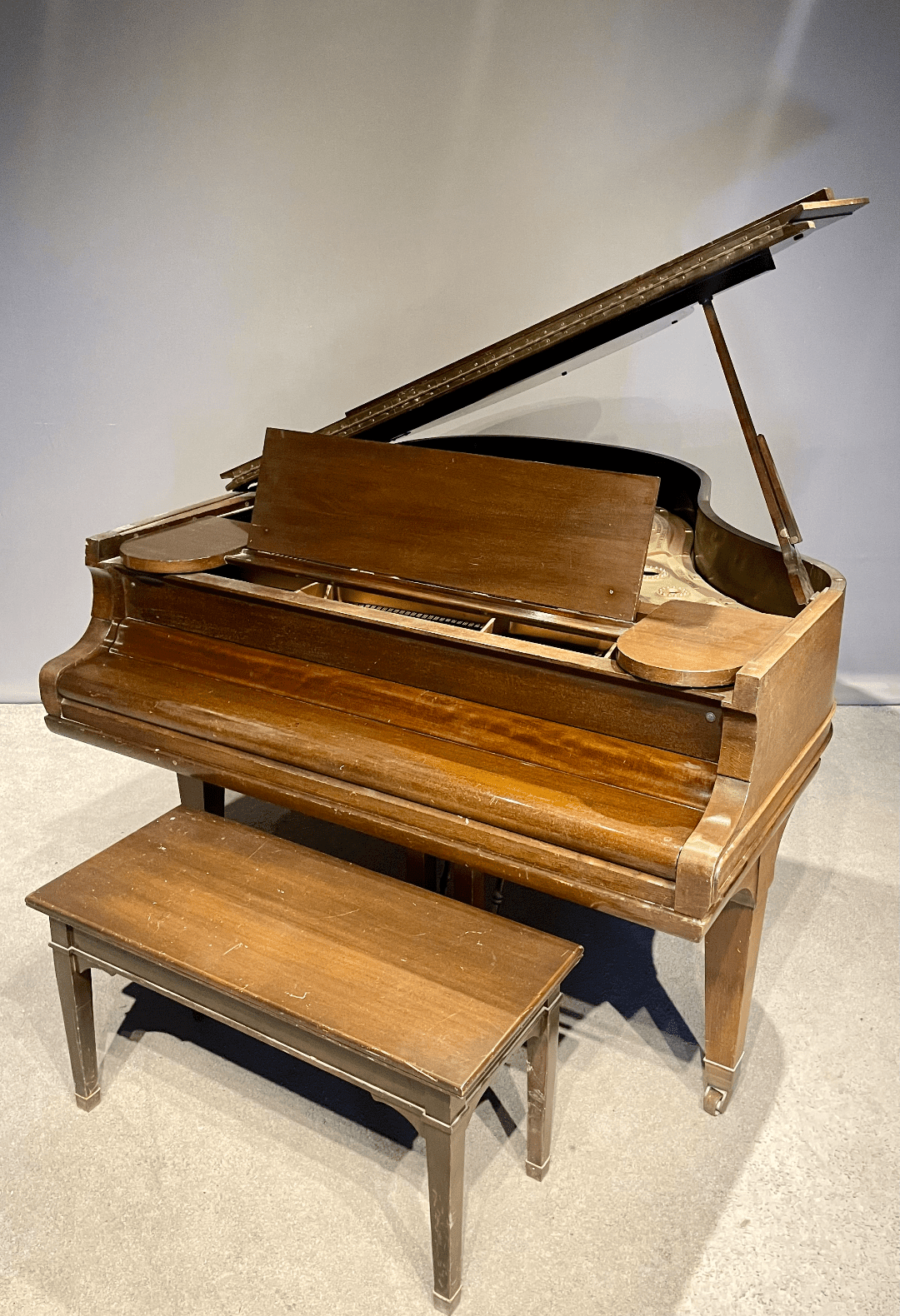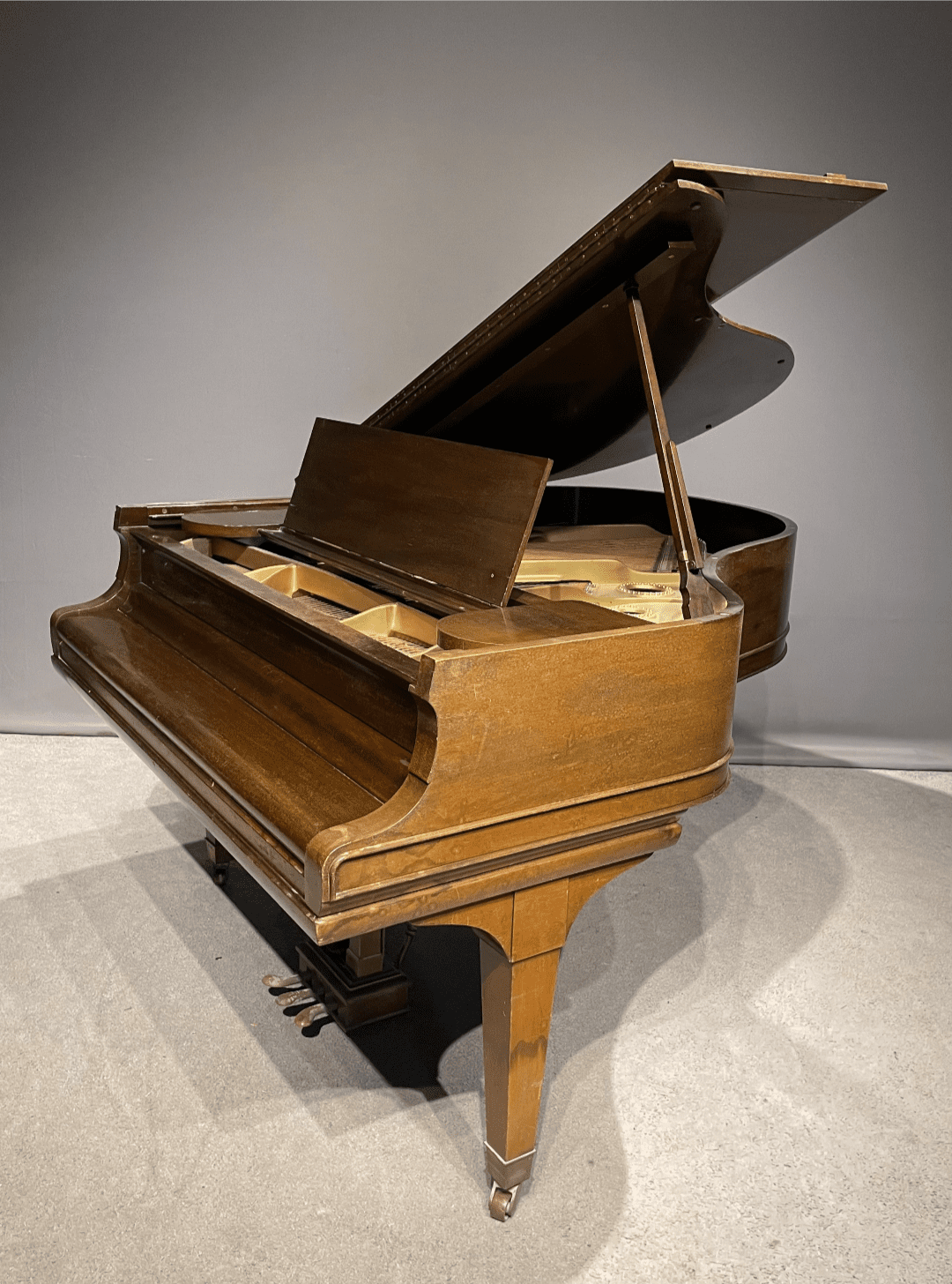 This Model A, however, is a rare example crafted from exquisite Honduran Mahogany, suggesting it was built for a private home rather than institutional use. This piano will be meticulously restored to meet the standards of the most discerning pianist.