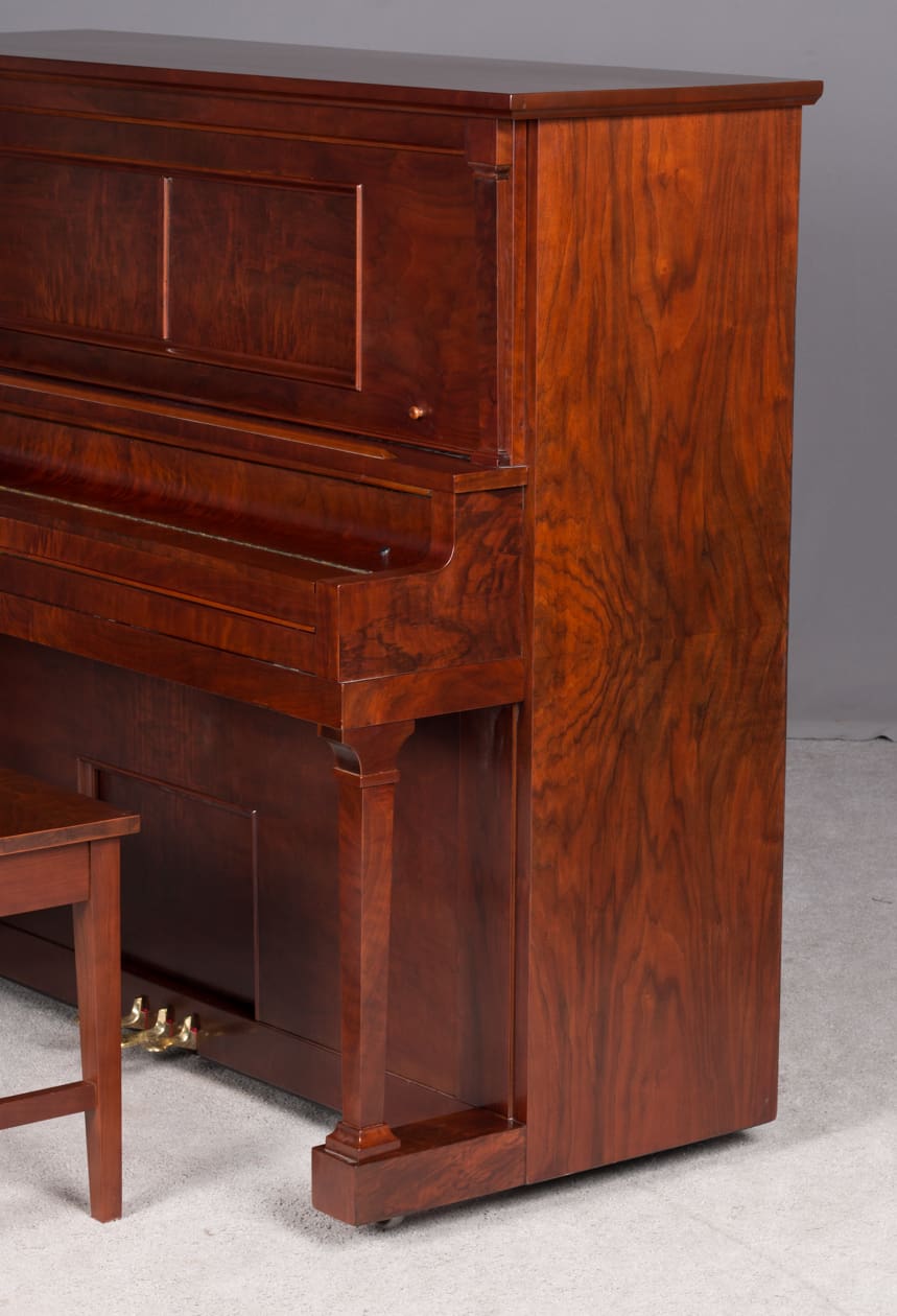 DEPOSITS: The restoration of this instrument has not been completed. A 30% deposit is required on instruments pending restoration. This deposit holds the instrument and keeps it from being offered to other clients, and it also makes that piano’s restoration a priority. Once we complete the restoration, we invite the client to visit our shop to see and hear the piano. If the client is unable to visit our shop, we will send professional photos and videos of the piano for review. The client then has the option of paying the balance and purchasing the piano, transferring their balance to another piano in our shop, or getting a full refund for their deposit. The client is never at risk.