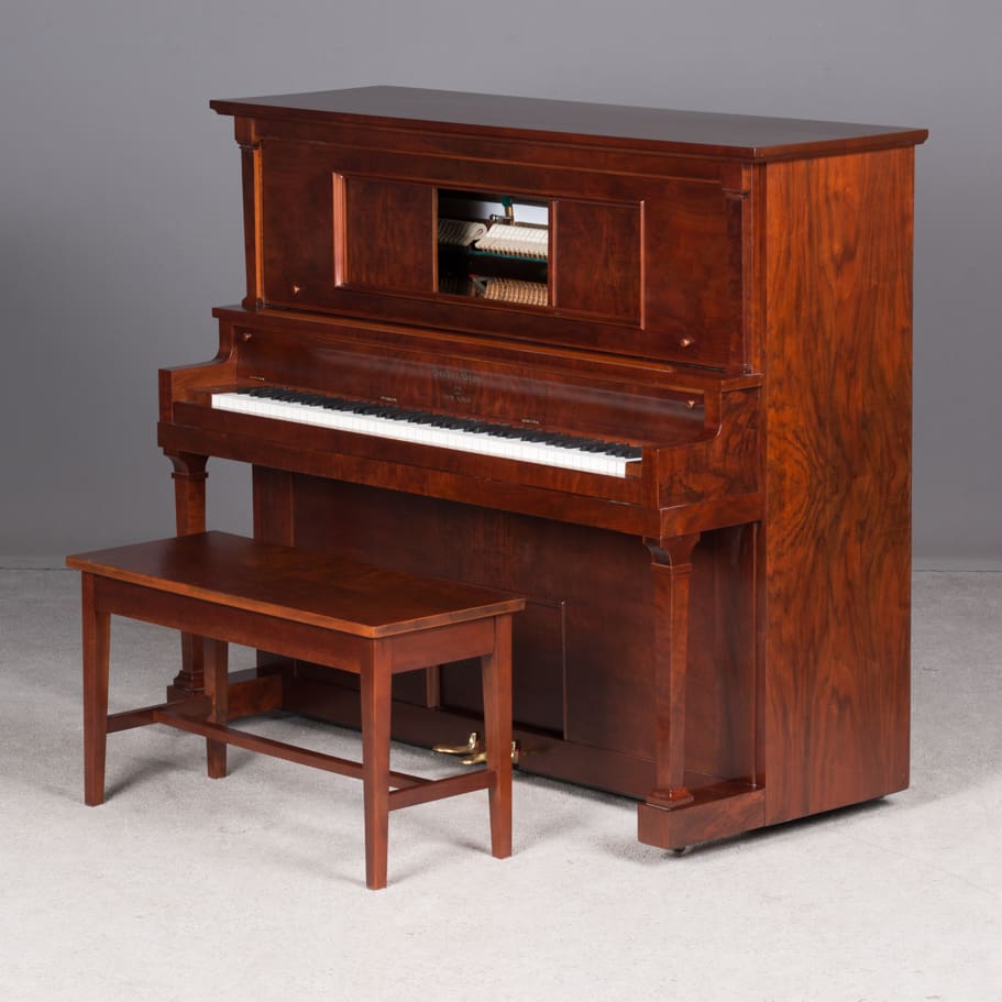 This piano has a strong, vibrant tone quality and has been restored to like-new condition, inside and out. It is restored with computerized player mechanisms so that it will operate wirelessly from an iPod or computer. Thousands of song titles are available!