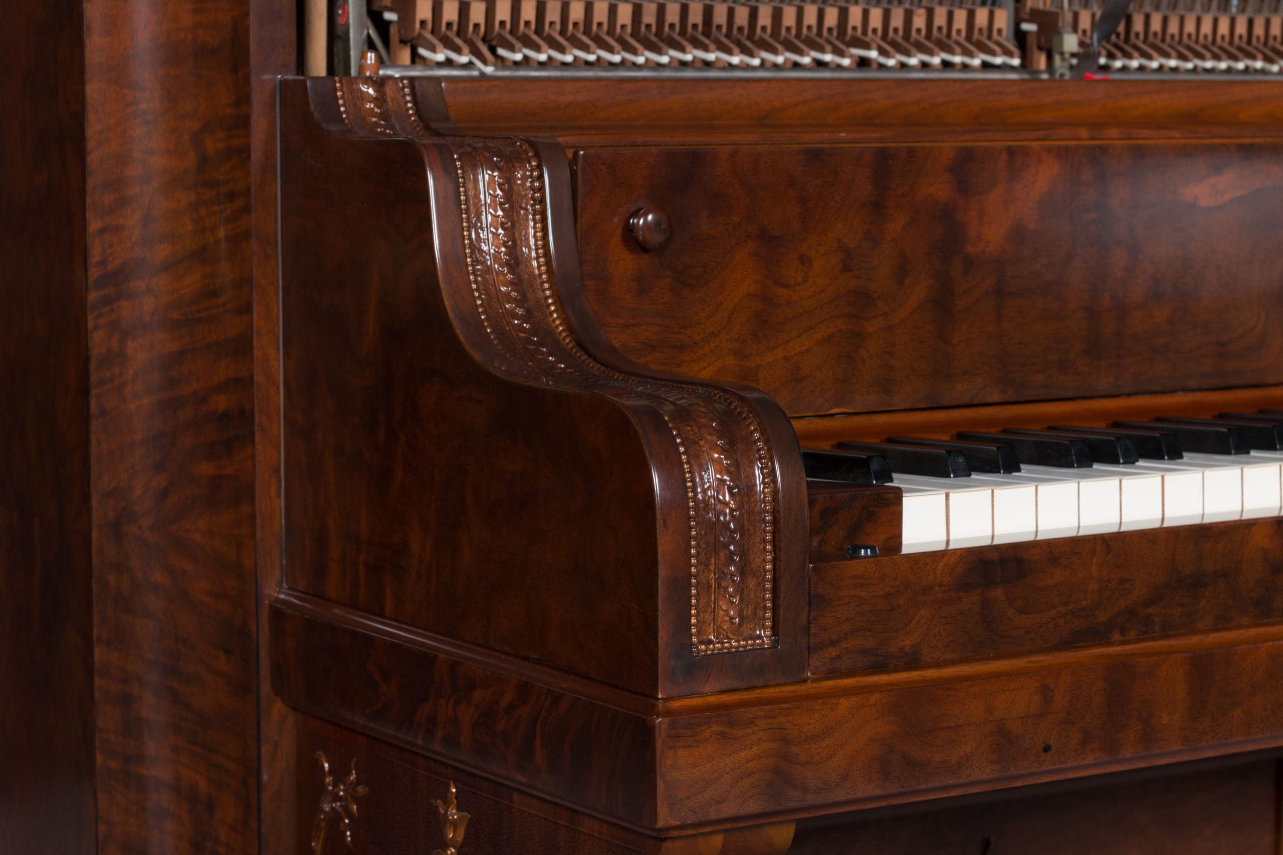 DEPOSITS: The restoration of this instrument has not been completed. A 30% deposit is required on instruments pending restoration. This deposit holds the instrument and keeps it from being offered to other clients, and it also makes that piano’s restoration a priority. Once we complete the restoration, we invite the client to visit our shop to see and hear the piano. If the client is unable to visit our shop, we will send professional photos and videos of the piano for review. The client then has the option of paying the balance and purchasing the piano, transferring their balance to another piano in our shop, or getting a full refund for their deposit. The client is never at risk.