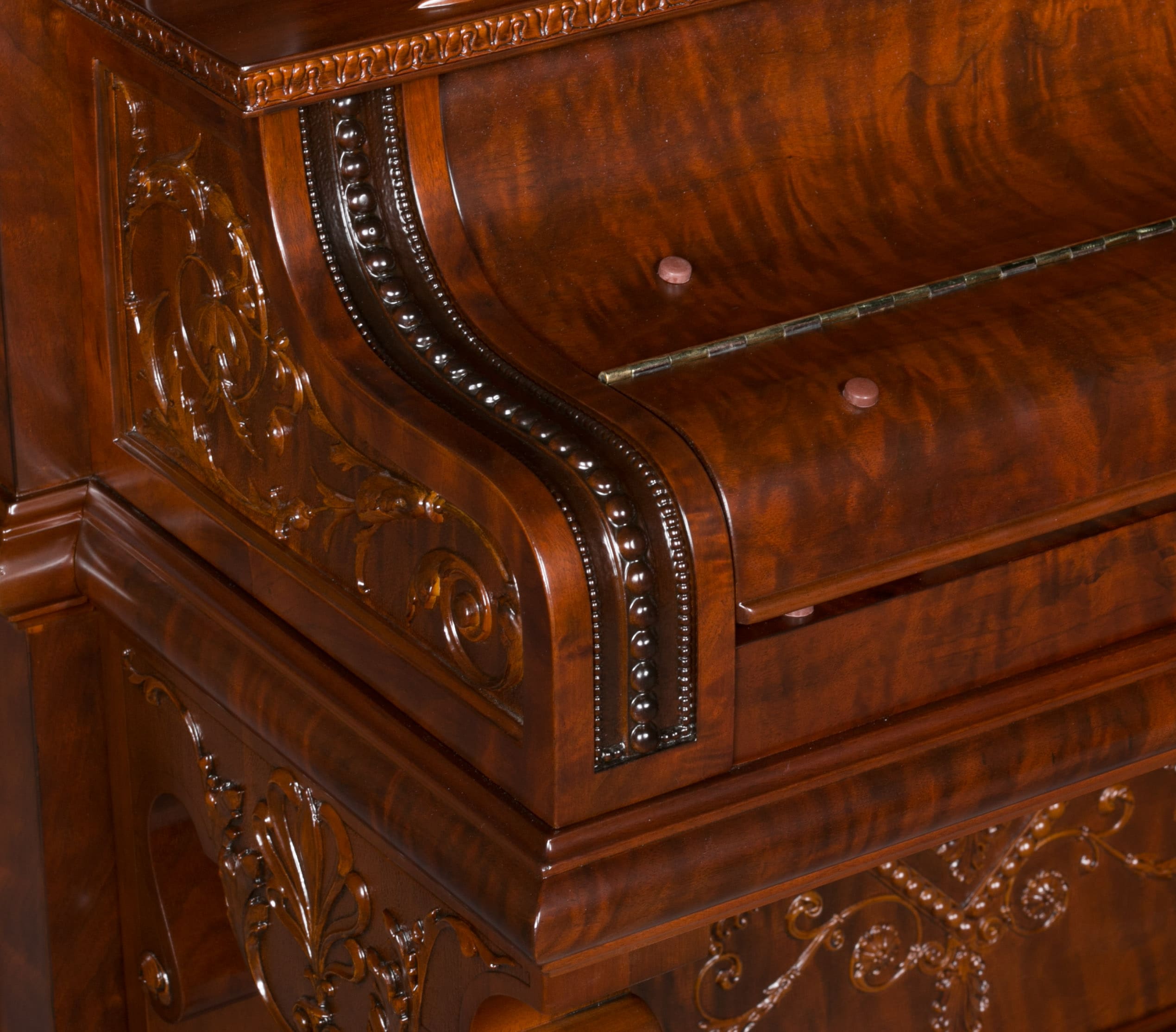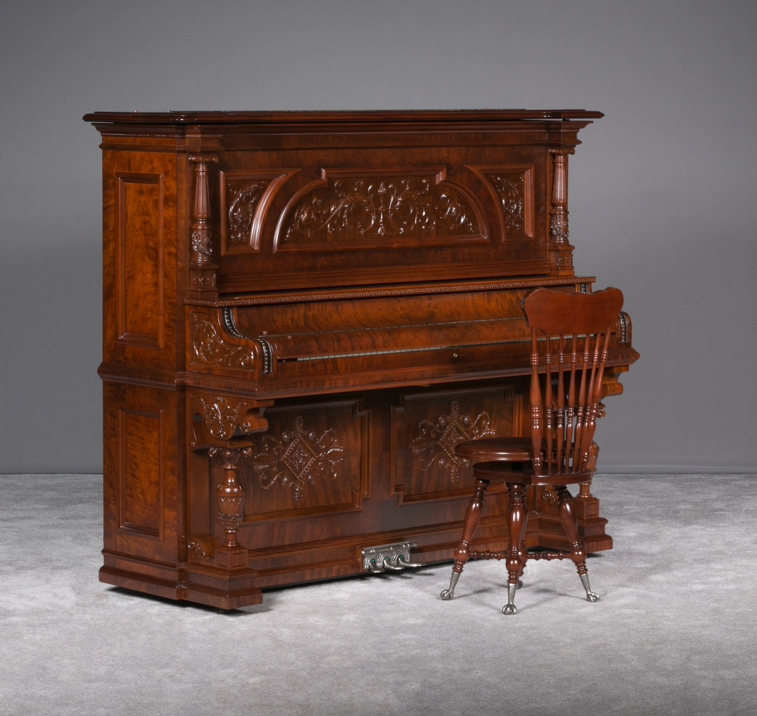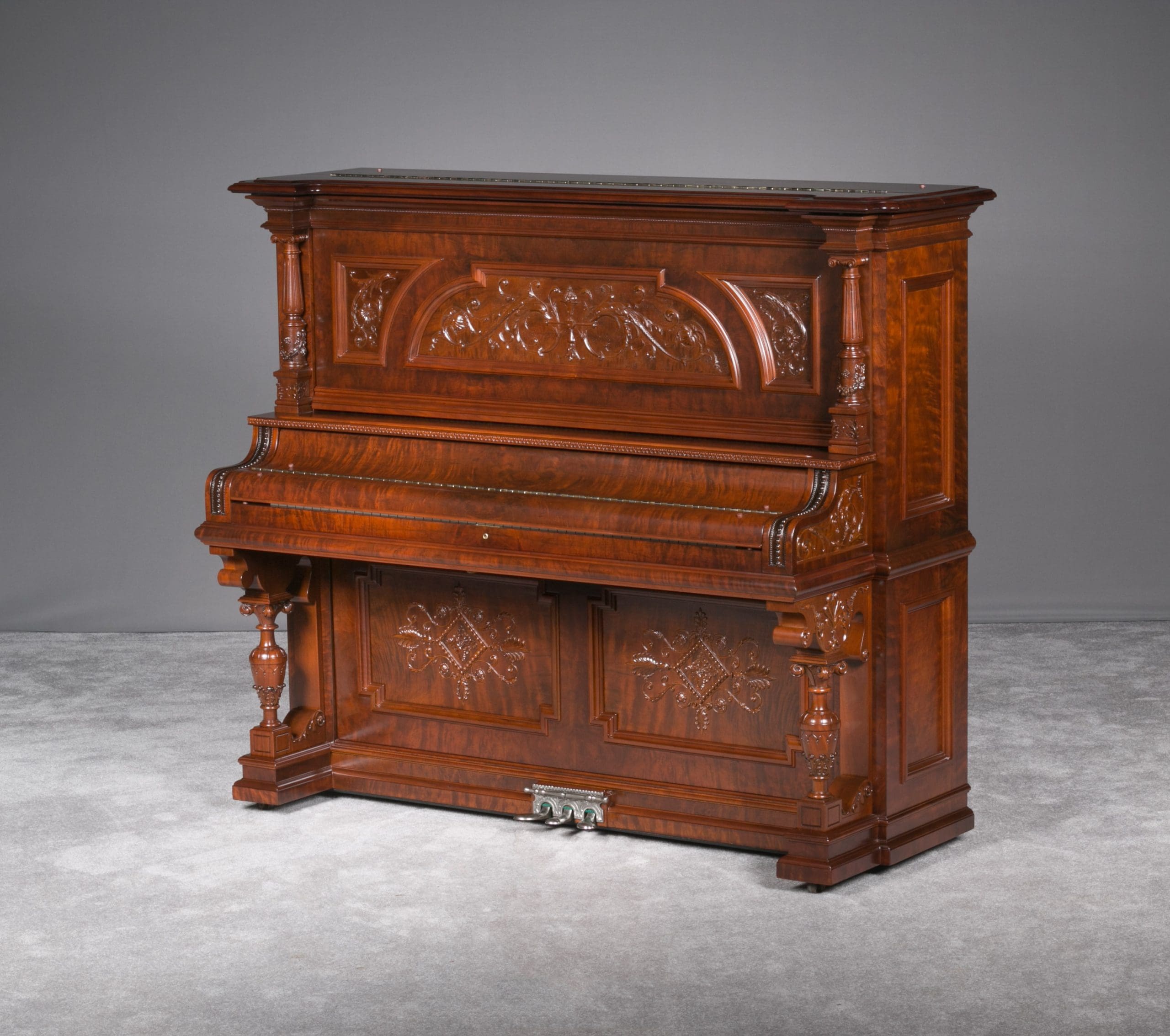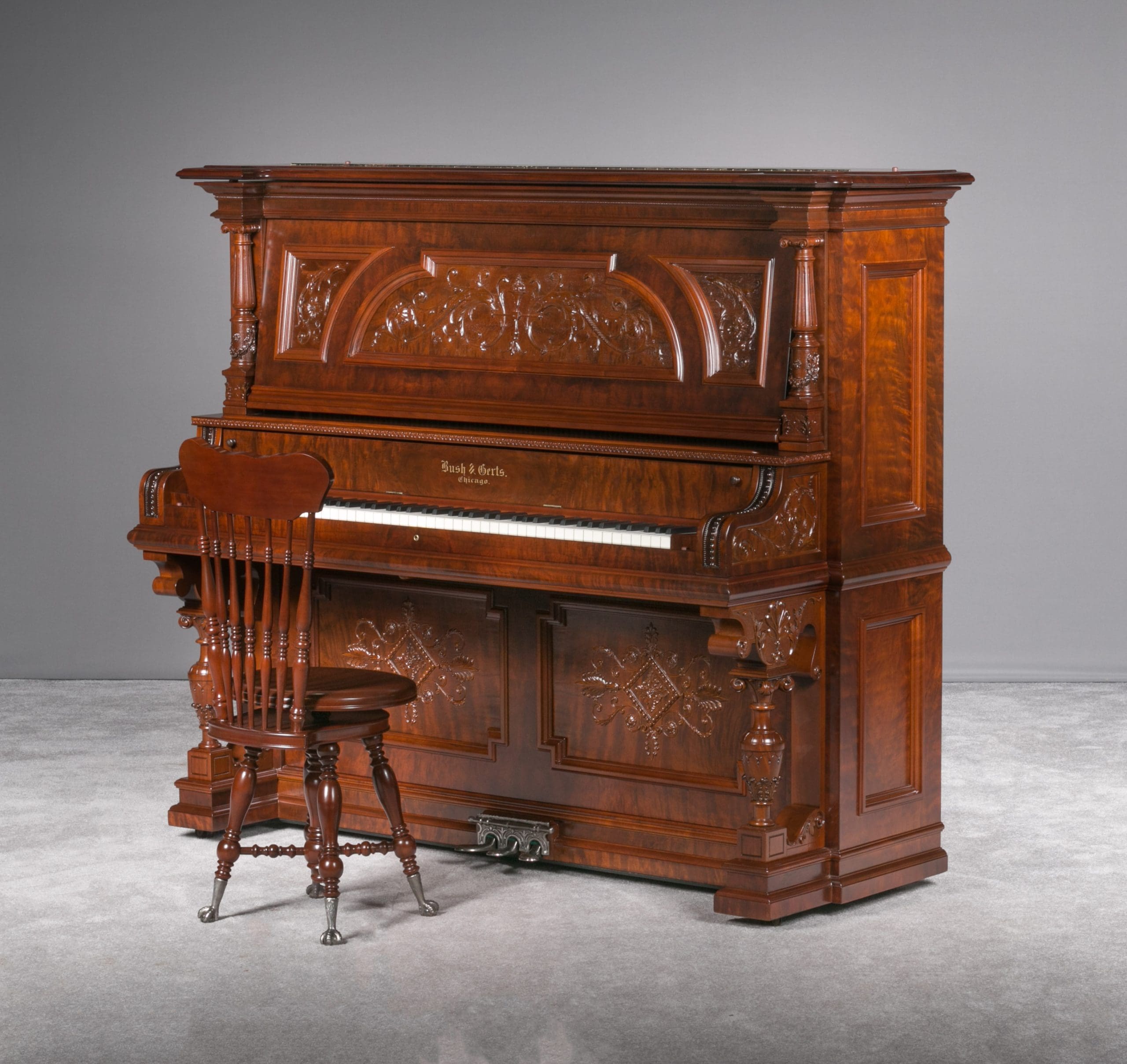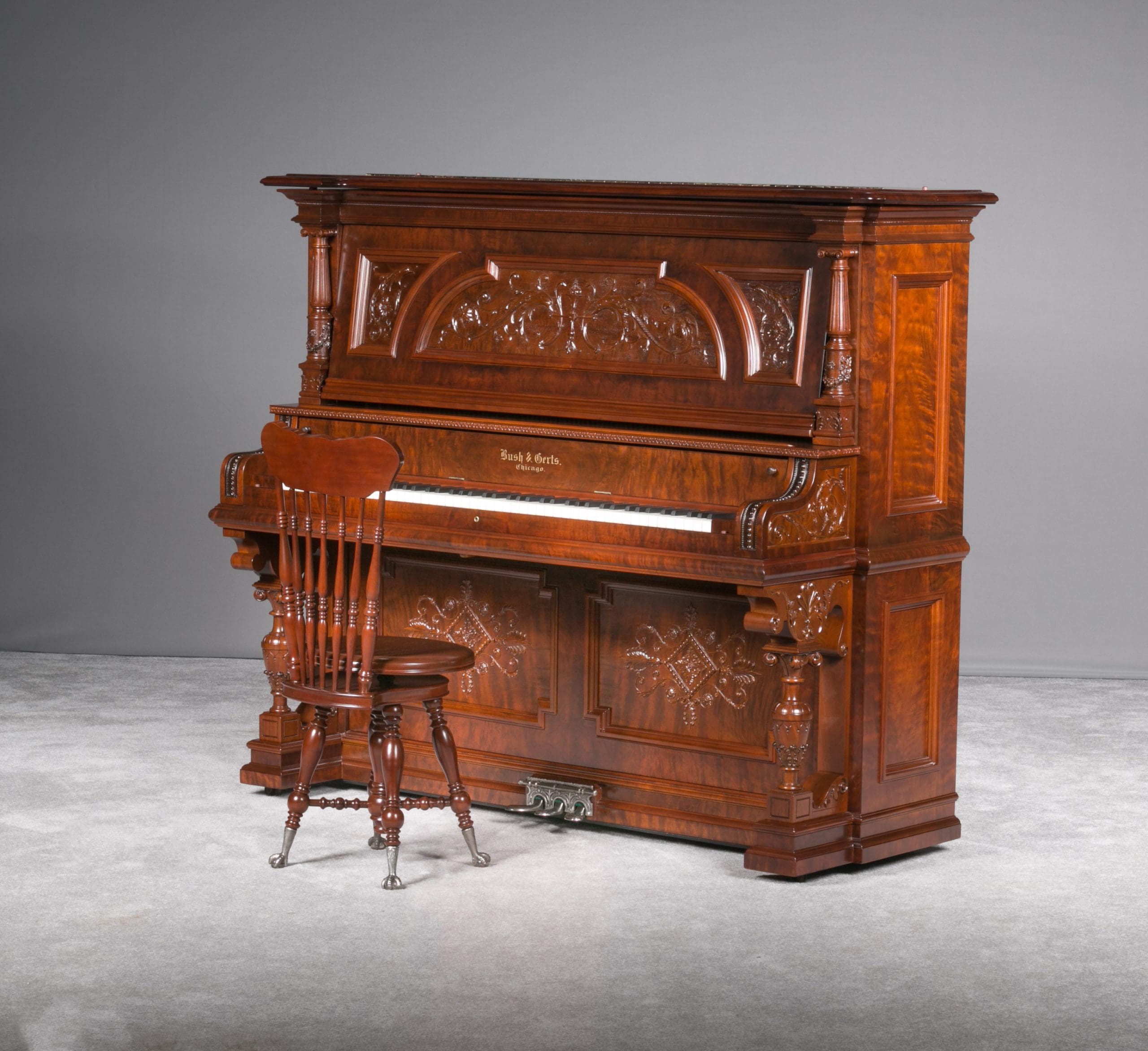 This beautiful piano was the highest grade, most expensive upright piano model offered by the Bush & Gerts Piano Company.