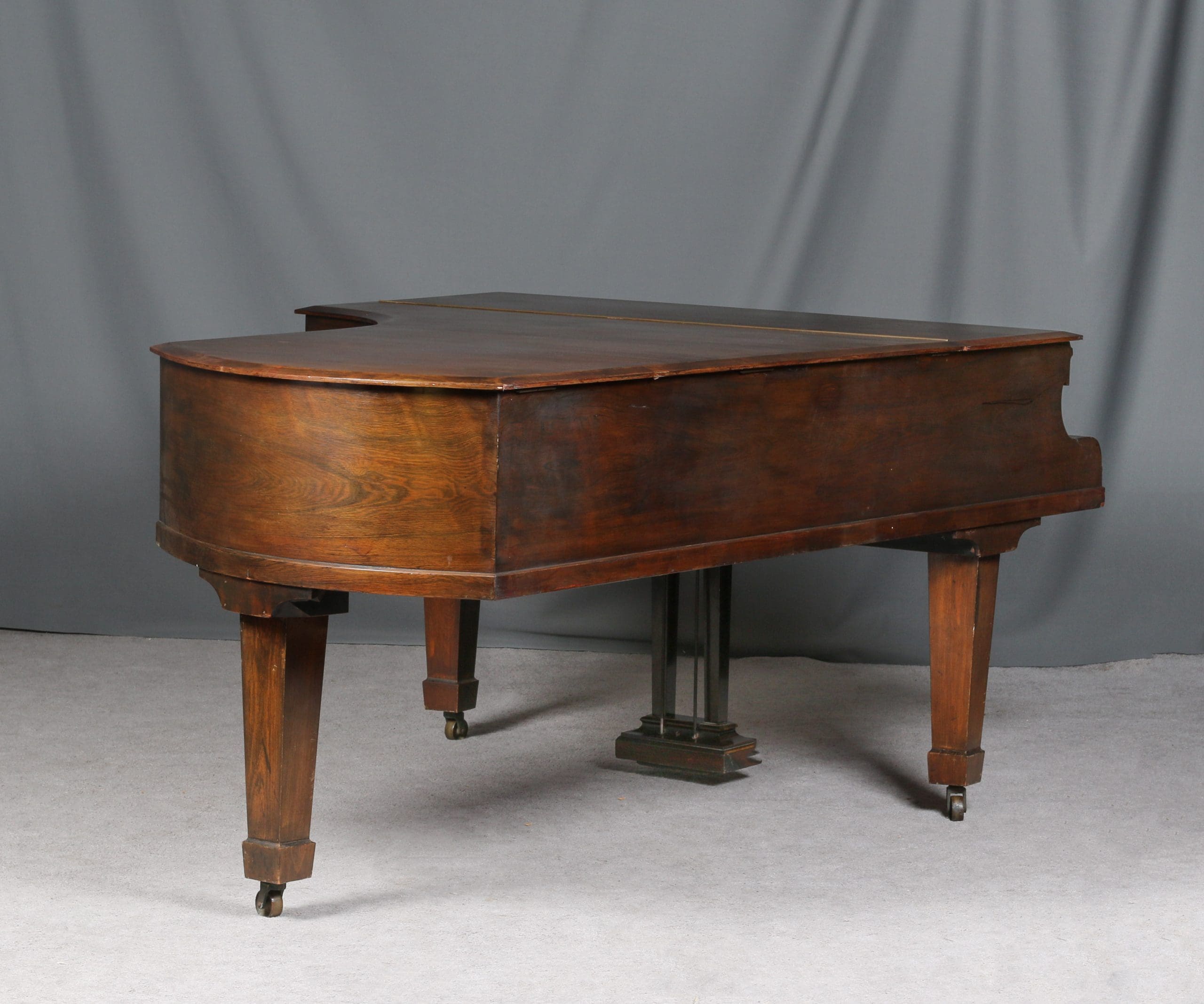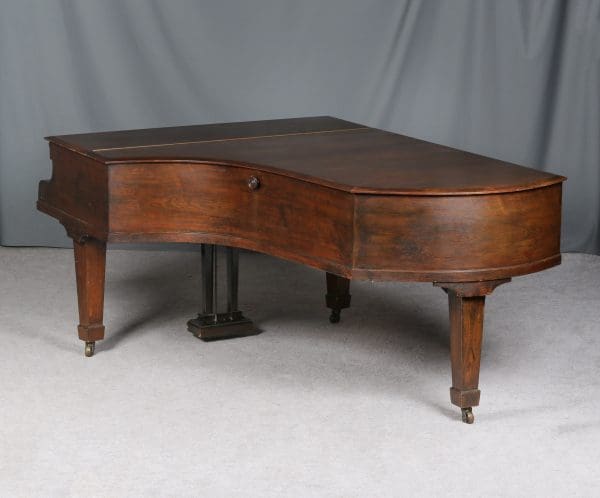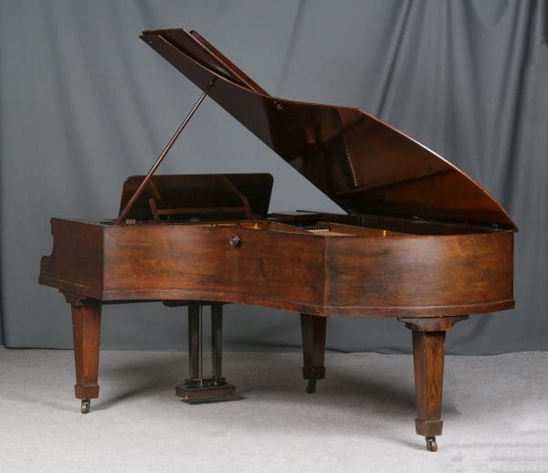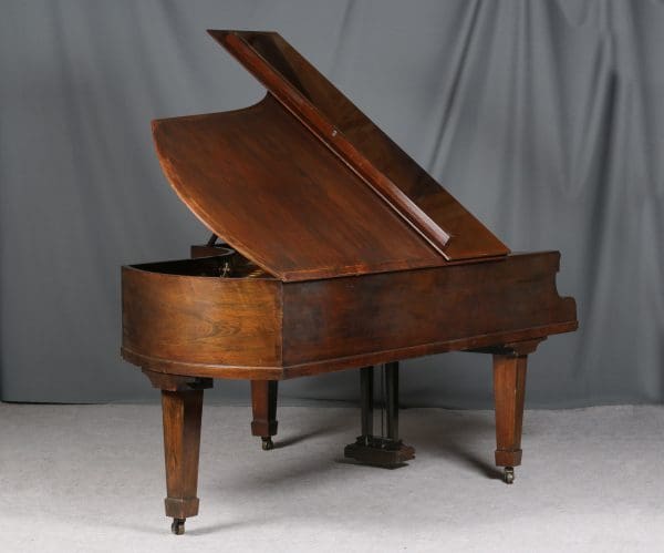 This piano is a rare full-size 19th Century Bechstein Semi-Concert Grand, an instrument suitable for the concert stage. While most concert grand pianos were finished in black lacquer for institutional use, full-size concert grand pianos in rosewood are quite rare, indicating this piano was likely built for the large home of a discriminating pianist.
