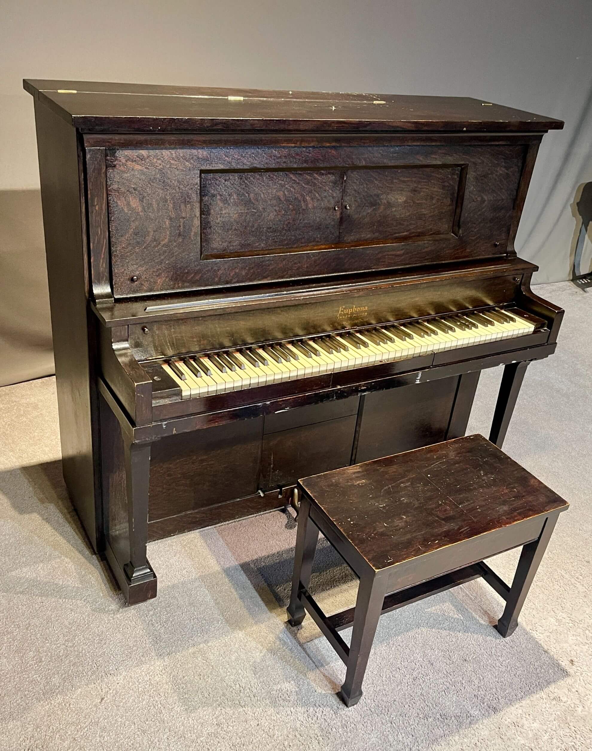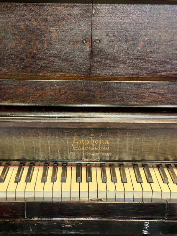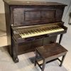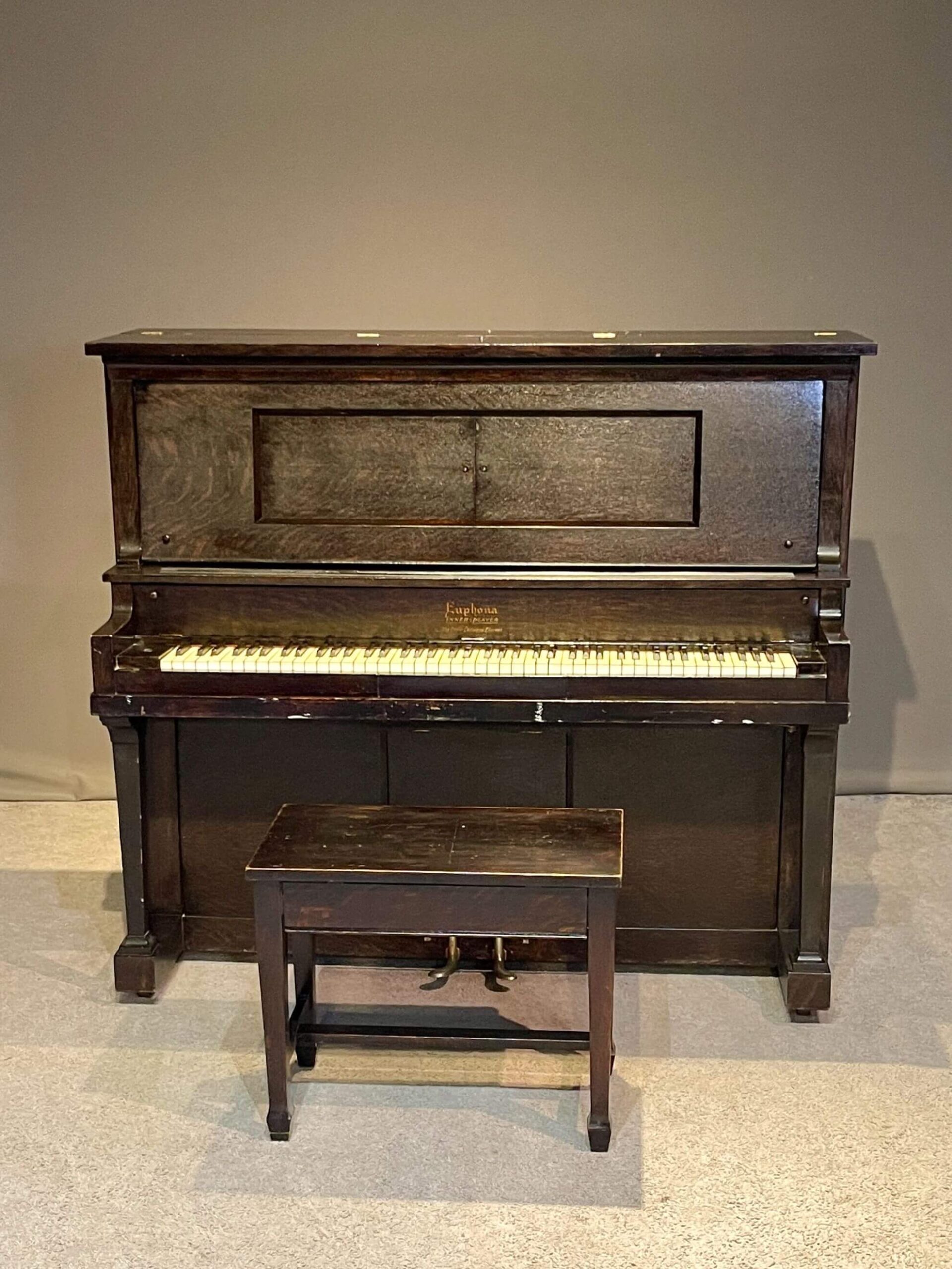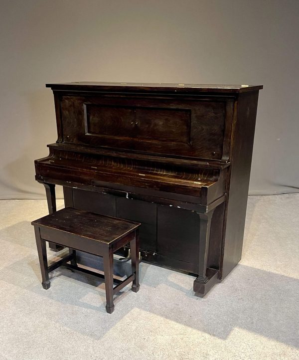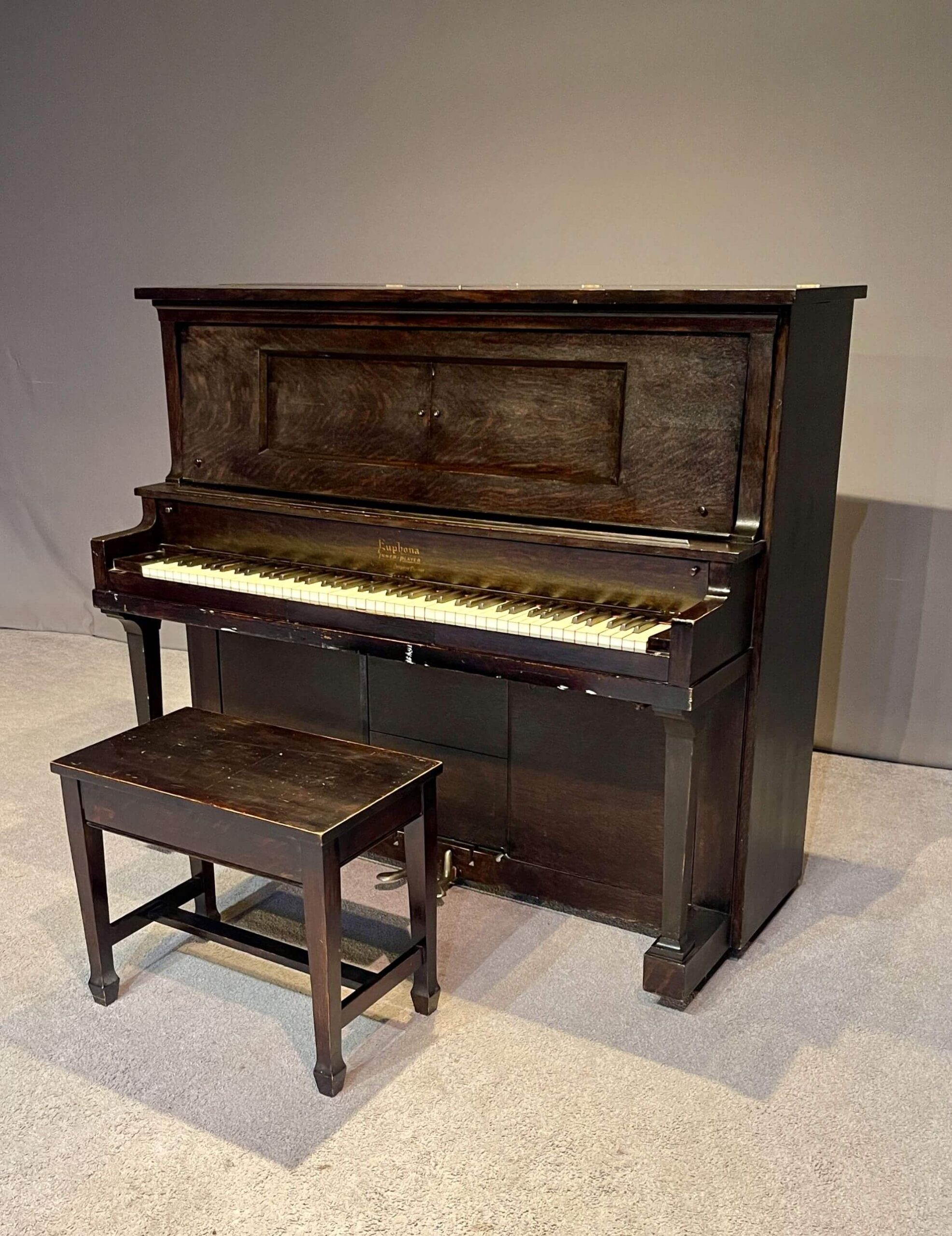 This particular piano is crafted from beautiful quarter-sawn oak—commonly referred to as “Tiger Oak” due to its striking grain pattern. Though currently hidden beneath an aged finish, the wood’s natural beauty will be fully revealed through professional restoration, transforming it into a stunning showpiece.