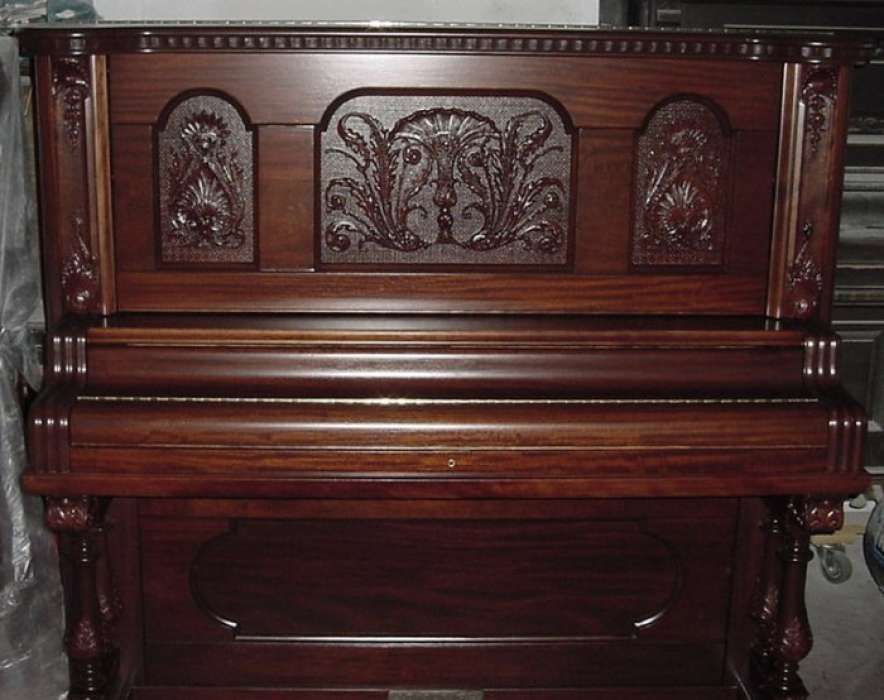 DEPOSITS: The restoration of this instrument has not been completed. A 30% deposit is required on instruments pending restoration. This deposit holds the instrument and keeps it from being offered to other clients, and it also makes that piano’s restoration a priority. Once we complete the restoration, we invite the client to visit our shop to see and hear the piano. If the client is unable to visit our shop, we will send professional photos and videos of the piano for review. The client then has the option of paying the balance and purchasing the piano, transferring their balance to another piano in our shop, or getting a full refund for their deposit. The client is never at risk.