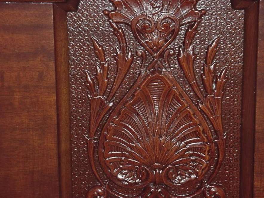 The Cable Piano Company was one of the largest and most successful piano manufacturing companies in America. This lovely piano was built by Cable in about 1892, and is made of heavily carved Mahogany wood. Note the intricate woodwork on the front panels and legs, all complimented by the beautiful mahogany finish. This piano is a large, full size upright, and is taller than the average upright piano; this allows the piano to give a deep, rich sound due to the longer strings an larger soundboard. The piano is being restored to like new condition, and can be equipped with computerized player mechanisms if desired. A matching stool is included.