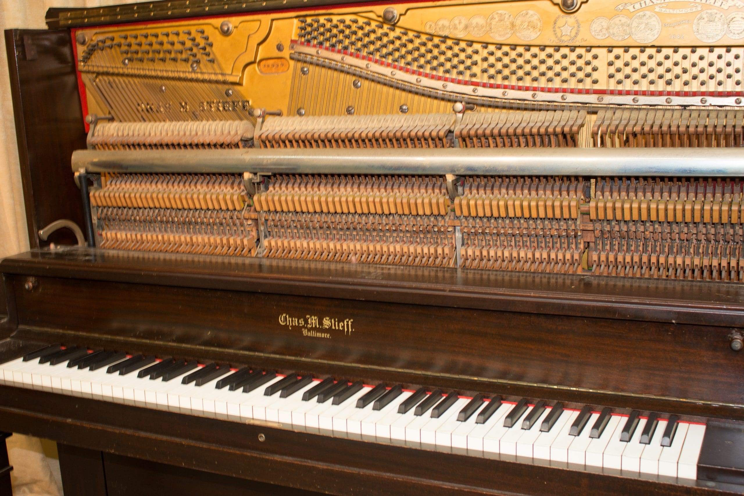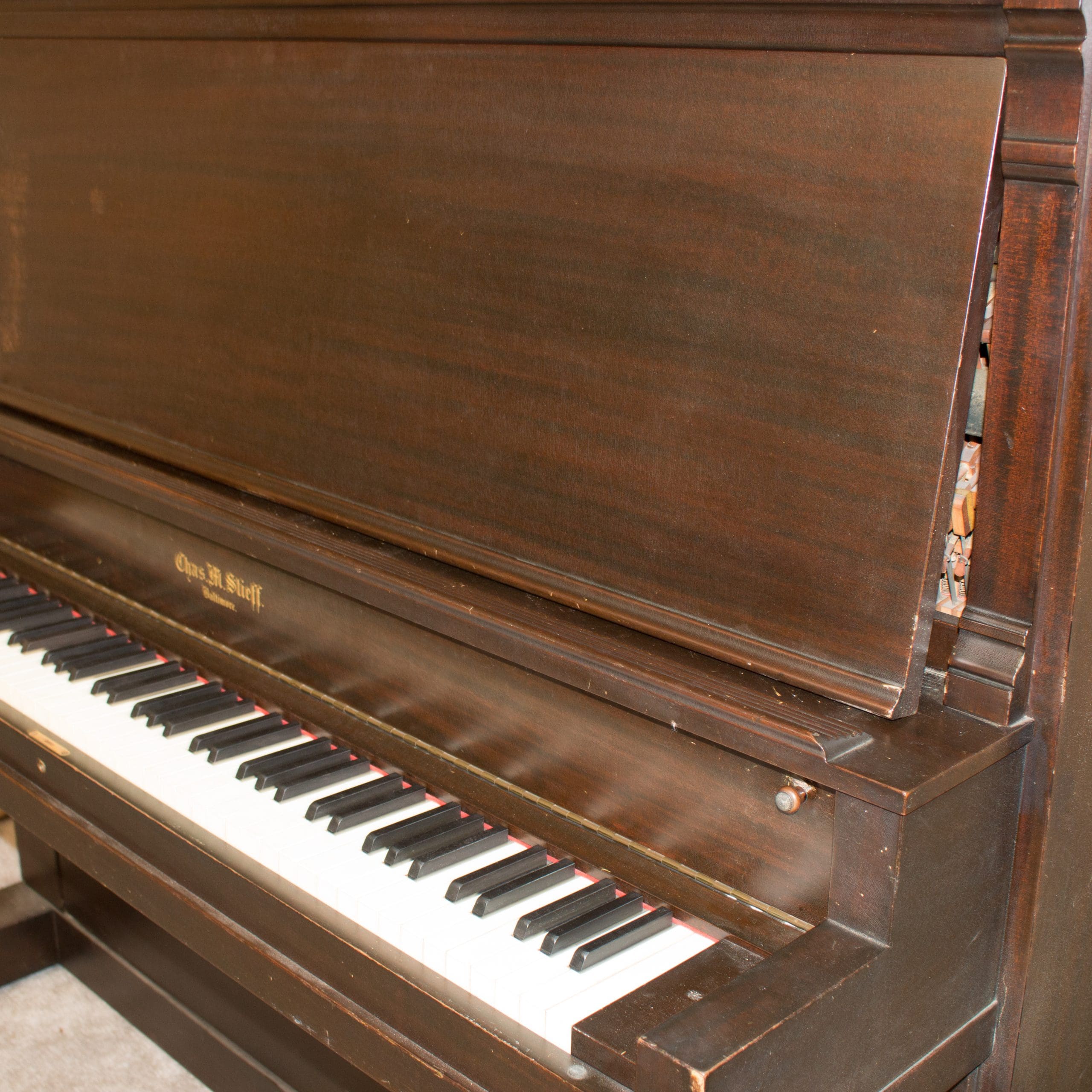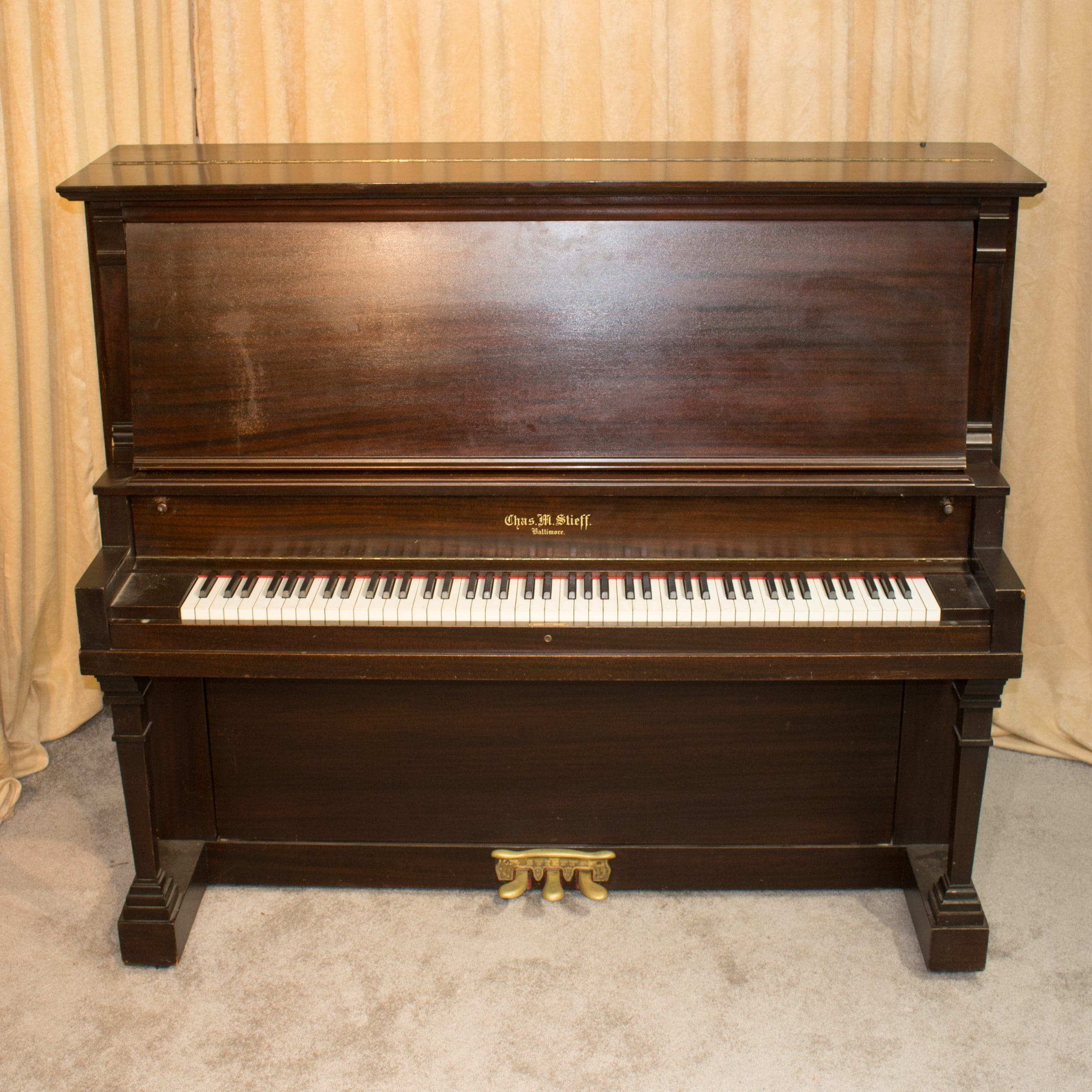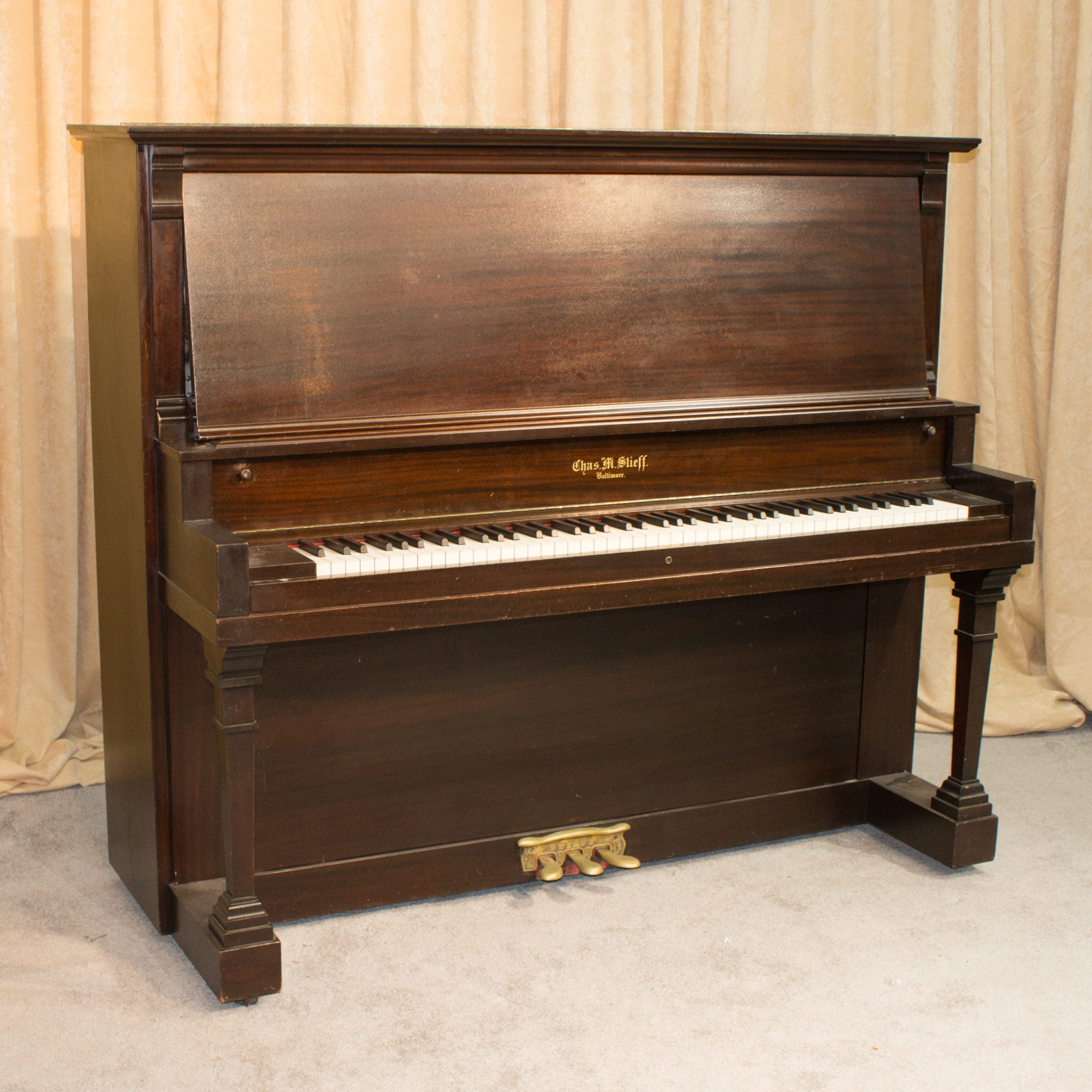 Instruments by Charles M. Stieff were known to be exceptionally well-made pianos, often referred to as “The Poor Man’s Steinway”. While Stieff pianos were not inexpensive, the firm’s success resulted from their ability to provide a top-quality musical instrument at a lower price most other major brand names.