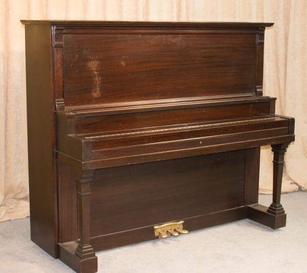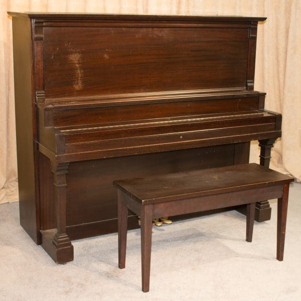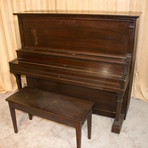 This piano was built by The Charles M. Stieff Piano Company of Baltimore during the “Golden Age” of piano building in America. This piano is a large, full size upright with the string length and soundboard are of a full grand piano! This piano is made of imported Honduran Mahogany wood and is of the Mission style, making it ideal for an early 20th Century American Bungalow or Craftsman style home.