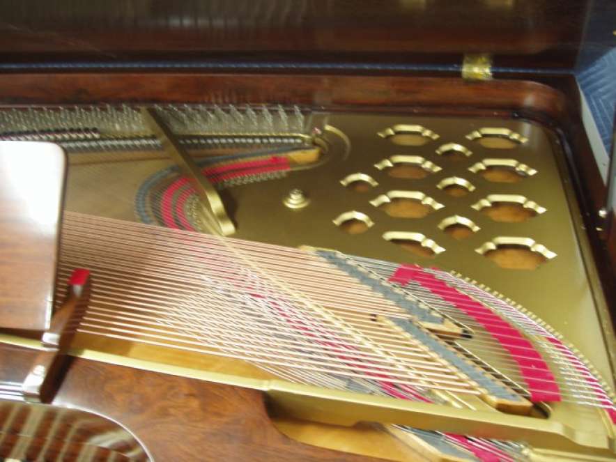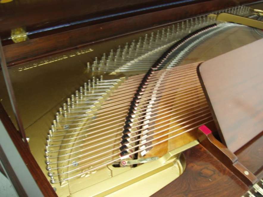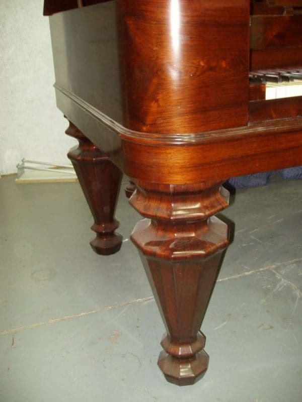 DEPOSITS: The restoration of this instrument has not been completed. A 30% deposit is required on instruments pending restoration. This deposit holds the instrument and keeps it from being offered to other clients, and it also makes that piano’s restoration a priority. Once we complete the restoration, we invite the client to visit our shop to see and hear the piano. If the client is unable to visit our shop, we will send professional photos and videos of the piano for review. The client then has the option of paying the balance and purchasing the piano, transferring their balance to another piano in our shop, or getting a full refund for their deposit. The client is never at risk.