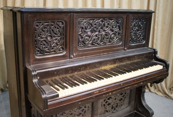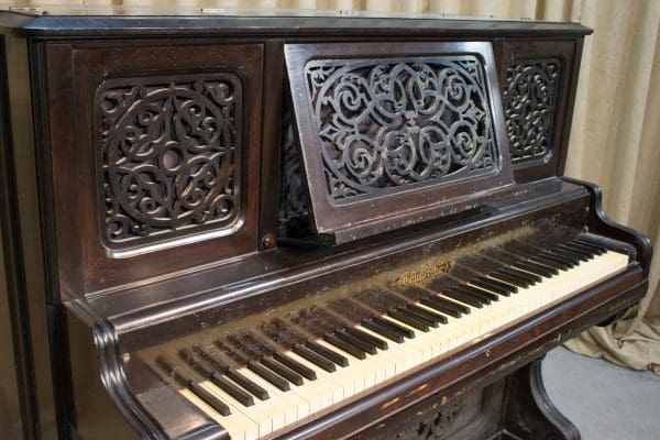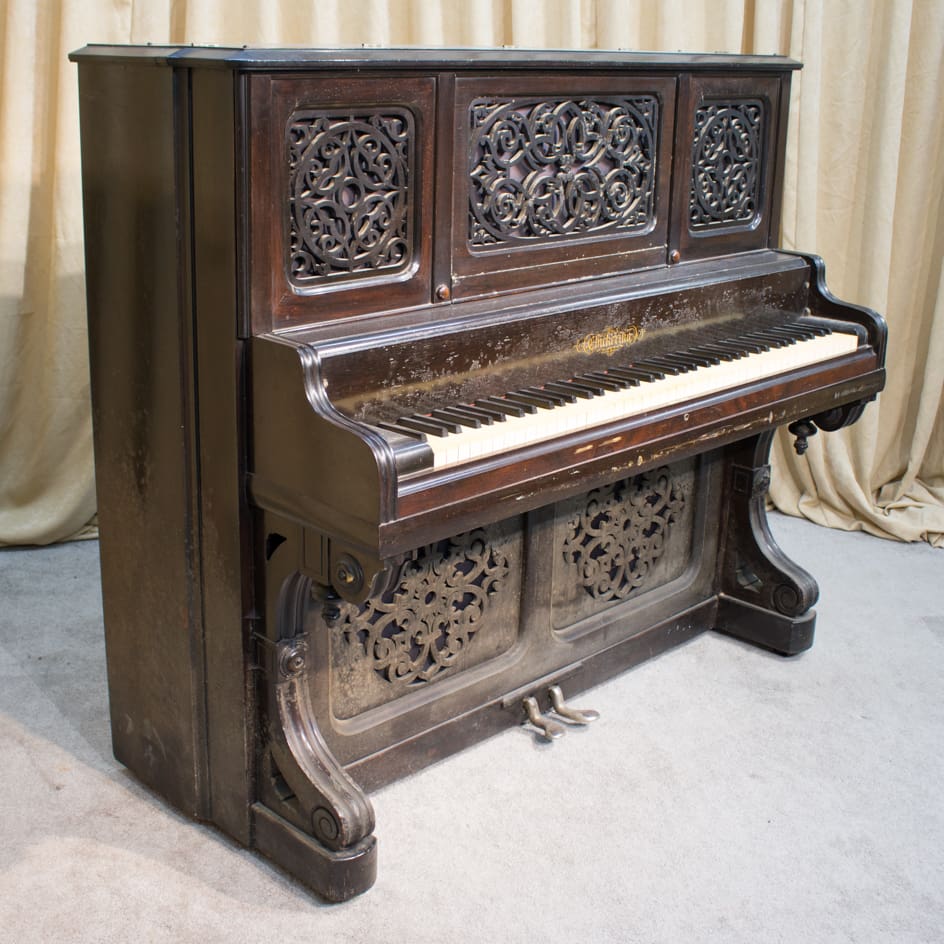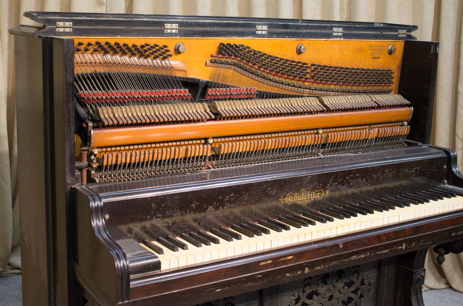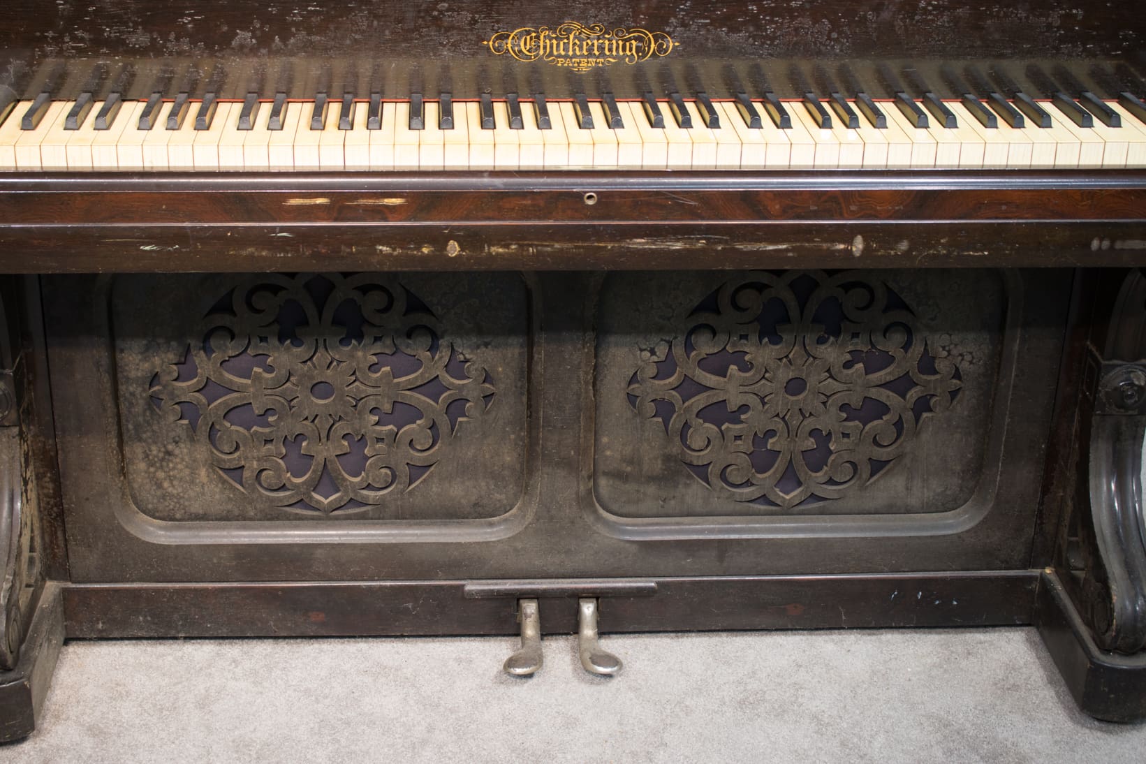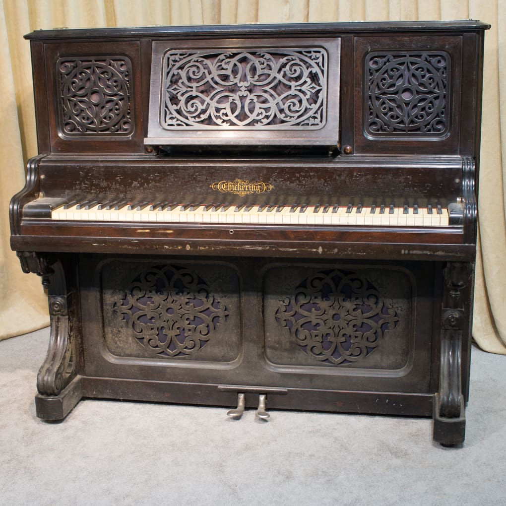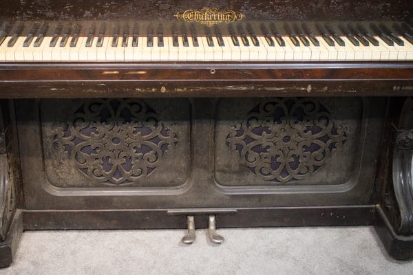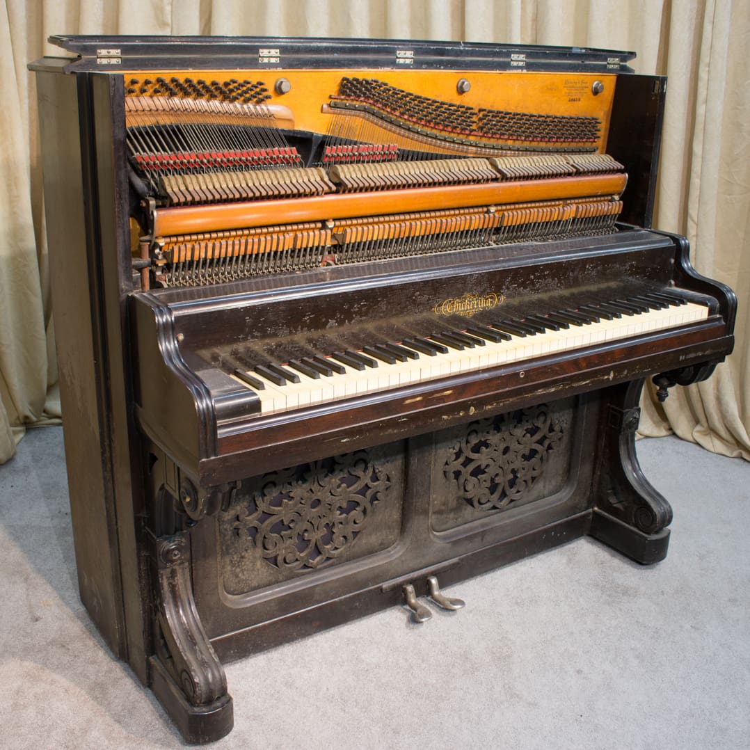 These large Chickering pianos have the string length and soundboard area comparable to a full grand piano; the tone of a restored Chickering pianos is quite impressive. This piano will be restored to like-new condition, inside and out, with a historical perspective in mind.