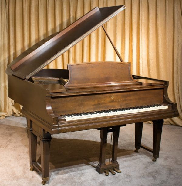 DEPOSITS: The restoration of this instrument has not been completed. A 30% deposit is required on instruments pending restoration. This deposit holds the instrument and keeps it from being offered to other clients, and it also makes that piano’s restoration a priority. Once we complete the restoration, we invite the client to visit our shop to see and hear the piano. If the client is unable to visit our shop, we will send professional photos and videos of the piano for review. The client then has the option of paying the balance and purchasing the piano, transferring their balance to another piano in our shop, or getting a full refund for their deposit. The client is never at risk.