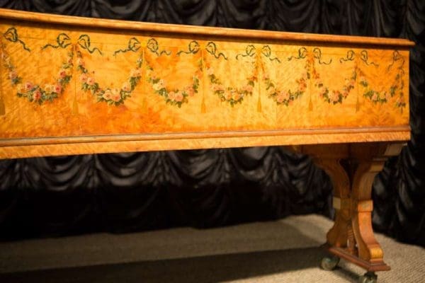 This piano is an irreplaceable part of musical and artistic history. It is being restored to like new condition, inside and out, so that it is a functional and durable musical instrument in addition to a beautiful piece of furniture. The restoration is being done with historical perspective in order to maintain the instrument’s unique antique and historical integrity.