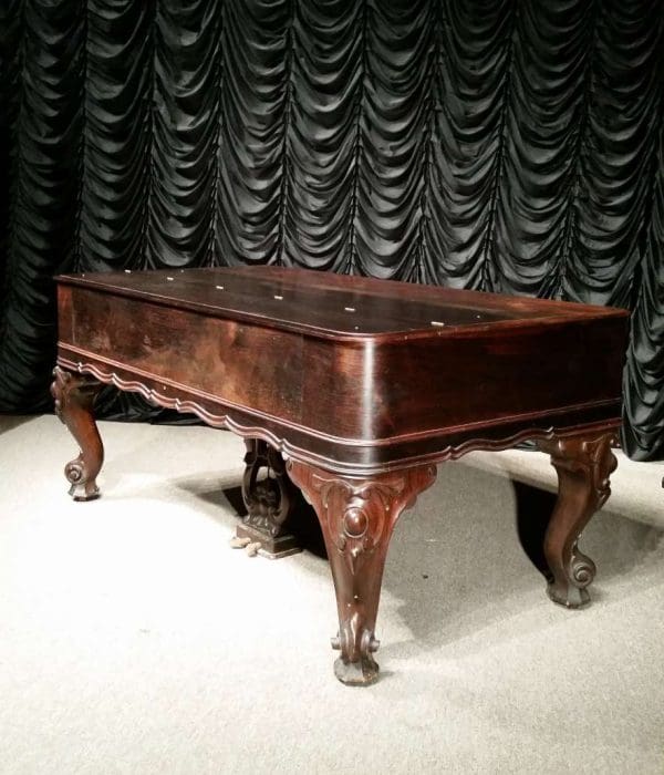 DEPOSITS: The restoration of this instrument has not been completed. A 30% deposit is required on instruments pending restoration. This deposit holds the instrument and keeps it from being offered to other clients, and it also makes that piano’s restoration a priority. Once we complete the restoration, we invite the client to visit our shop to see and hear the piano. If the client is unable to visit our shop, we will send professional photos and videos of the piano for review. The client then has the option of paying the balance and purchasing the piano, transferring their balance to another piano in our shop, or getting a full refund for their deposit. The client is never at risk.
