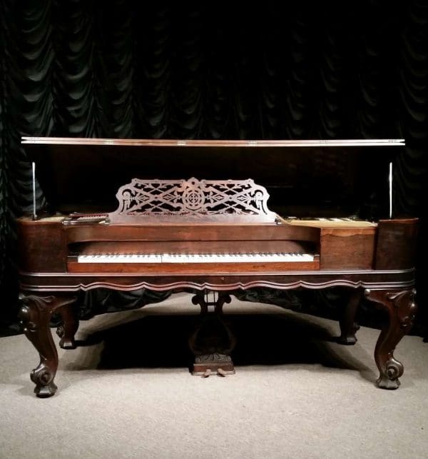 Decker Brothers was a superior manufacturer of square grand pianos during the mid to late 19th Century. This piano is made of beautifully carved Brazilian Rosewood and is made in the Rococo Victorian style. Note the heavily carved molding and trim, a trait of the more expensive pianos built during this time. The piano is being restored to like new condition. Computerized player mechanisms can be installed if desired.
