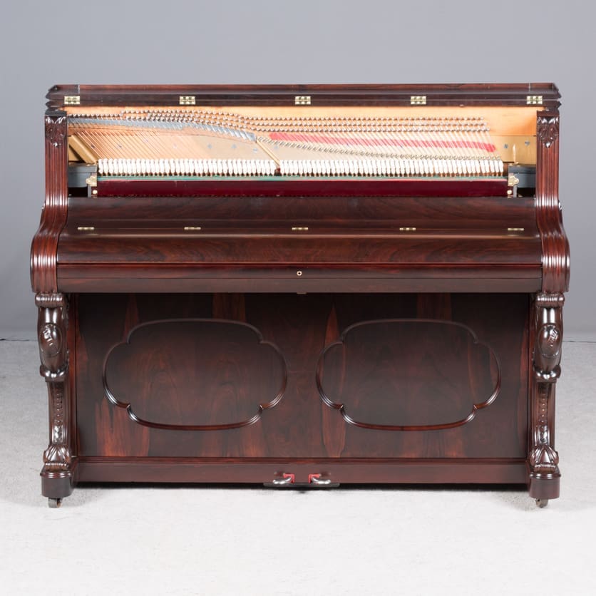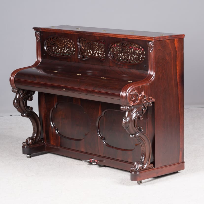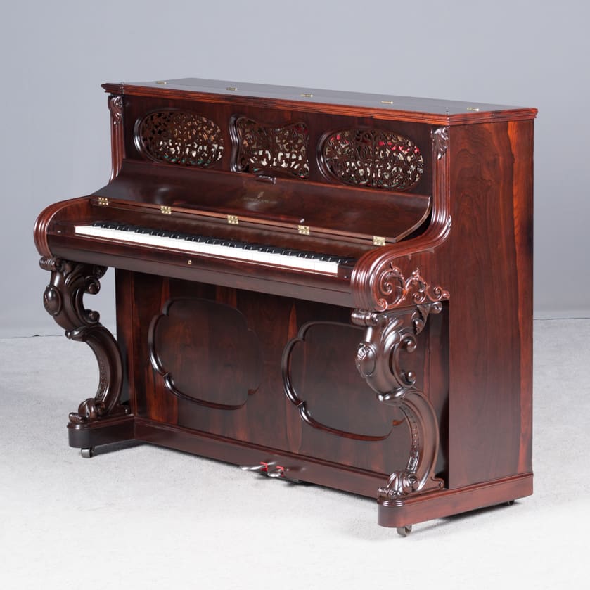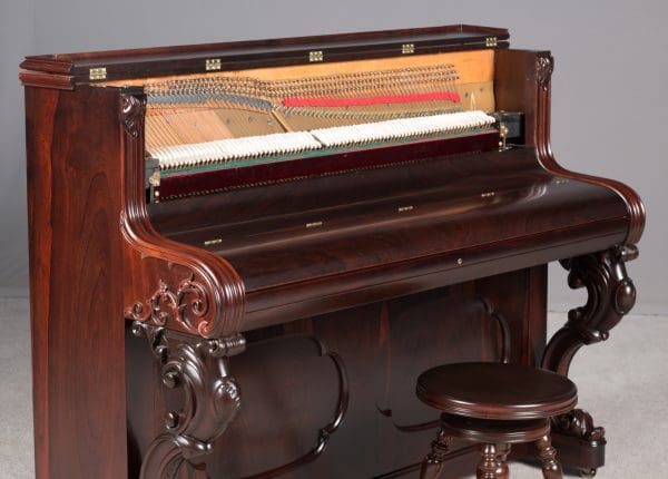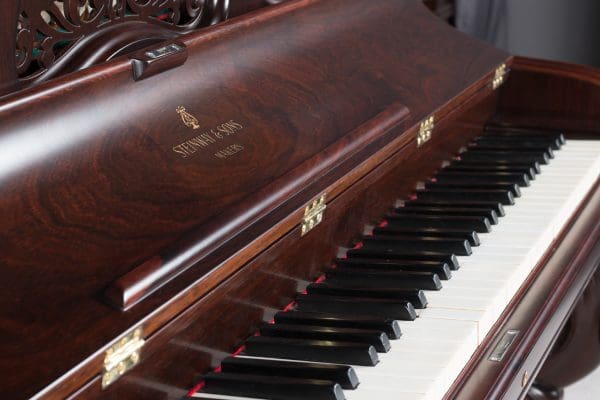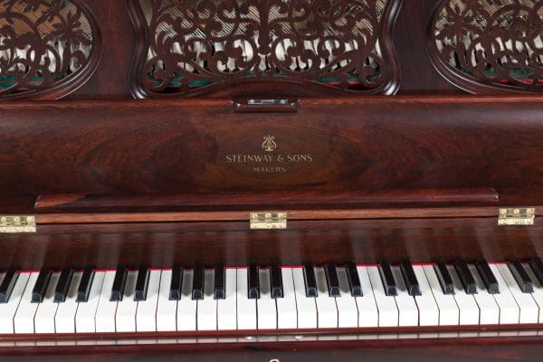 Steinway is said to have built the best pianos in the world. This beautiful little instrument is one of the earliest Steinway upright pianos we’ve ever had in our collection. Standing at about 40 inches tall, it’s small size made it ideal for boudoirs and small Victorian cottages. These early Steinway upright pianos are very rare due to the popularity of the square piano during the mid-19th Century. It was not until around 1890 that the upright piano gained favor over the square piano in America.