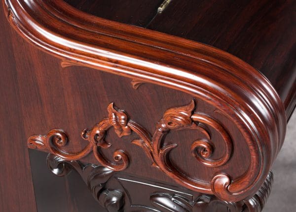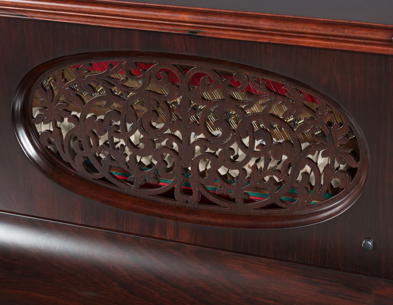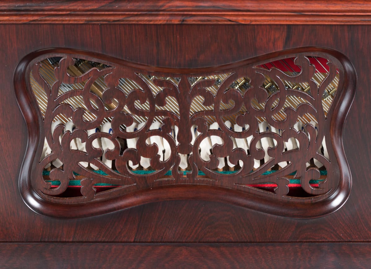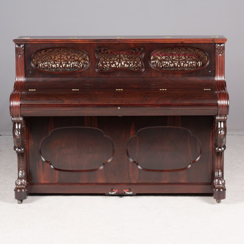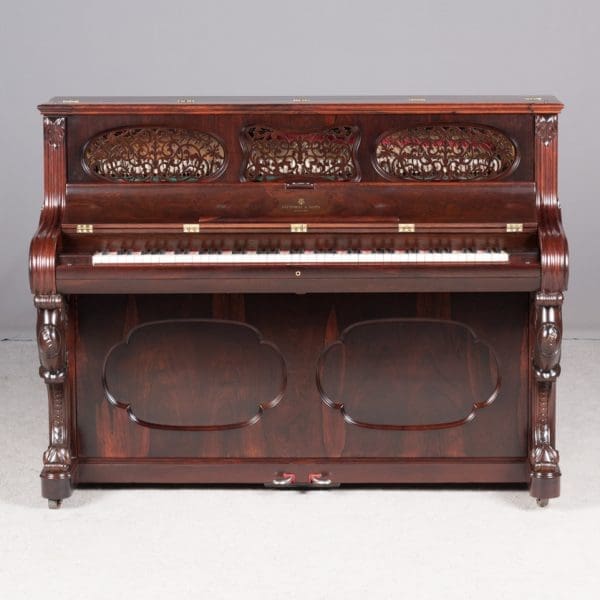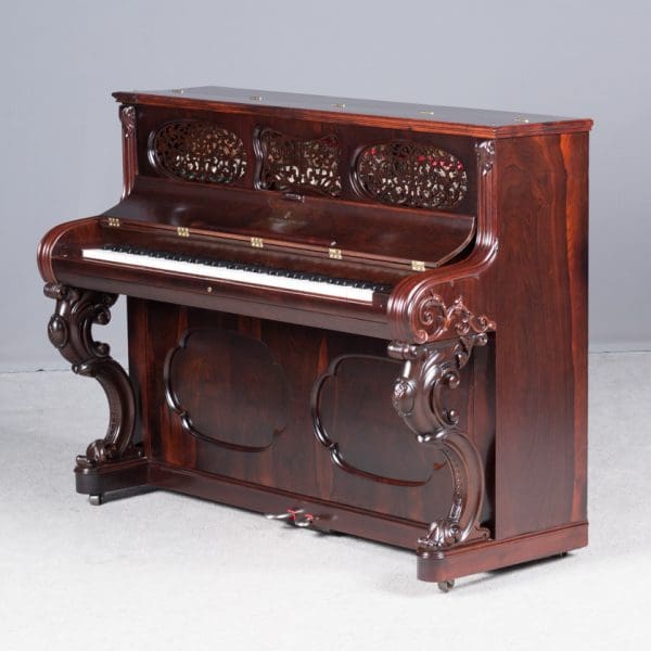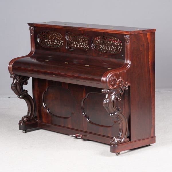 This beautiful instrument is made of endangered Brazilian Rosewood and is of the Rococo Victorian style. Note the extensively carved legs, moldings and trim. Only the finest Victorian parlor would have been privileged to house such an exquisite instrument!