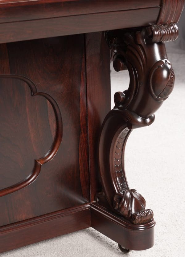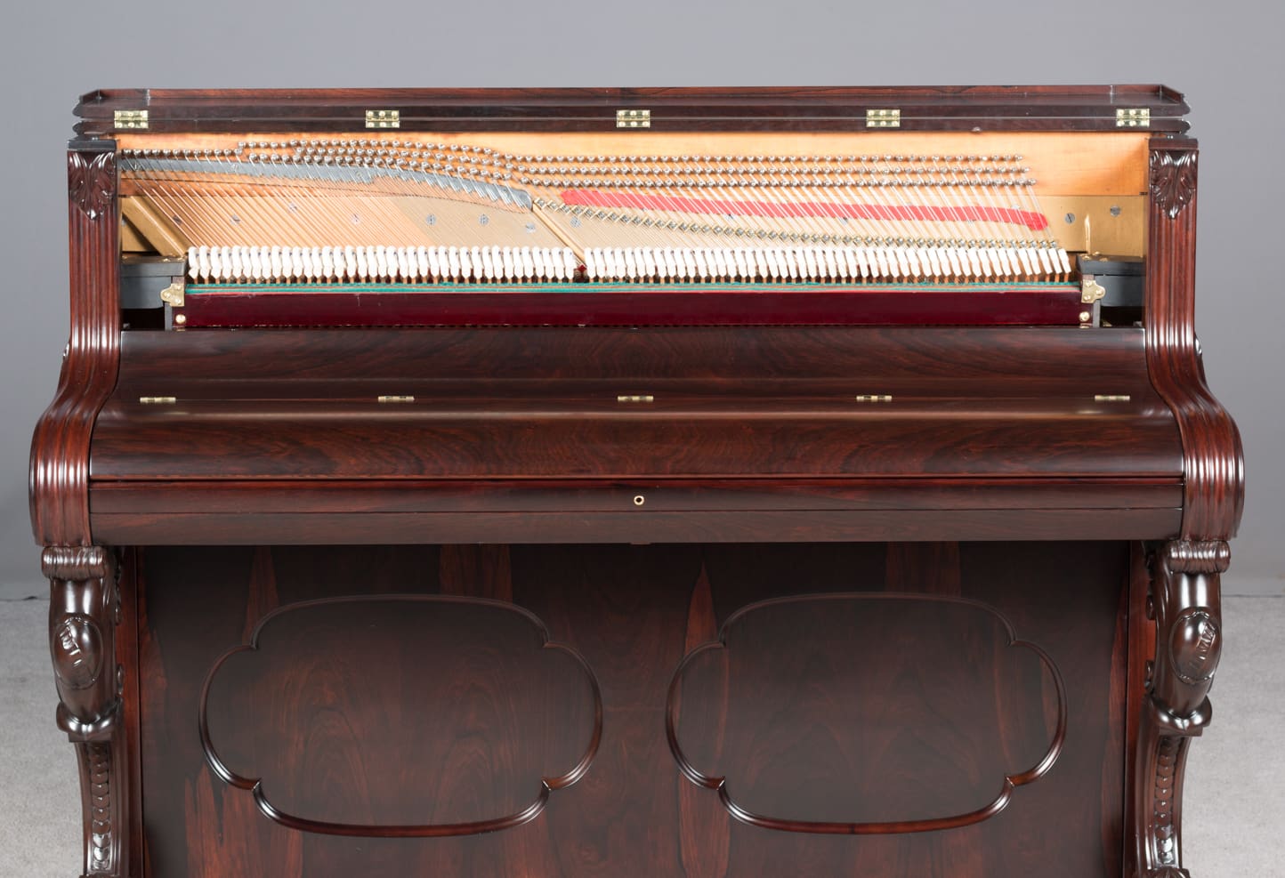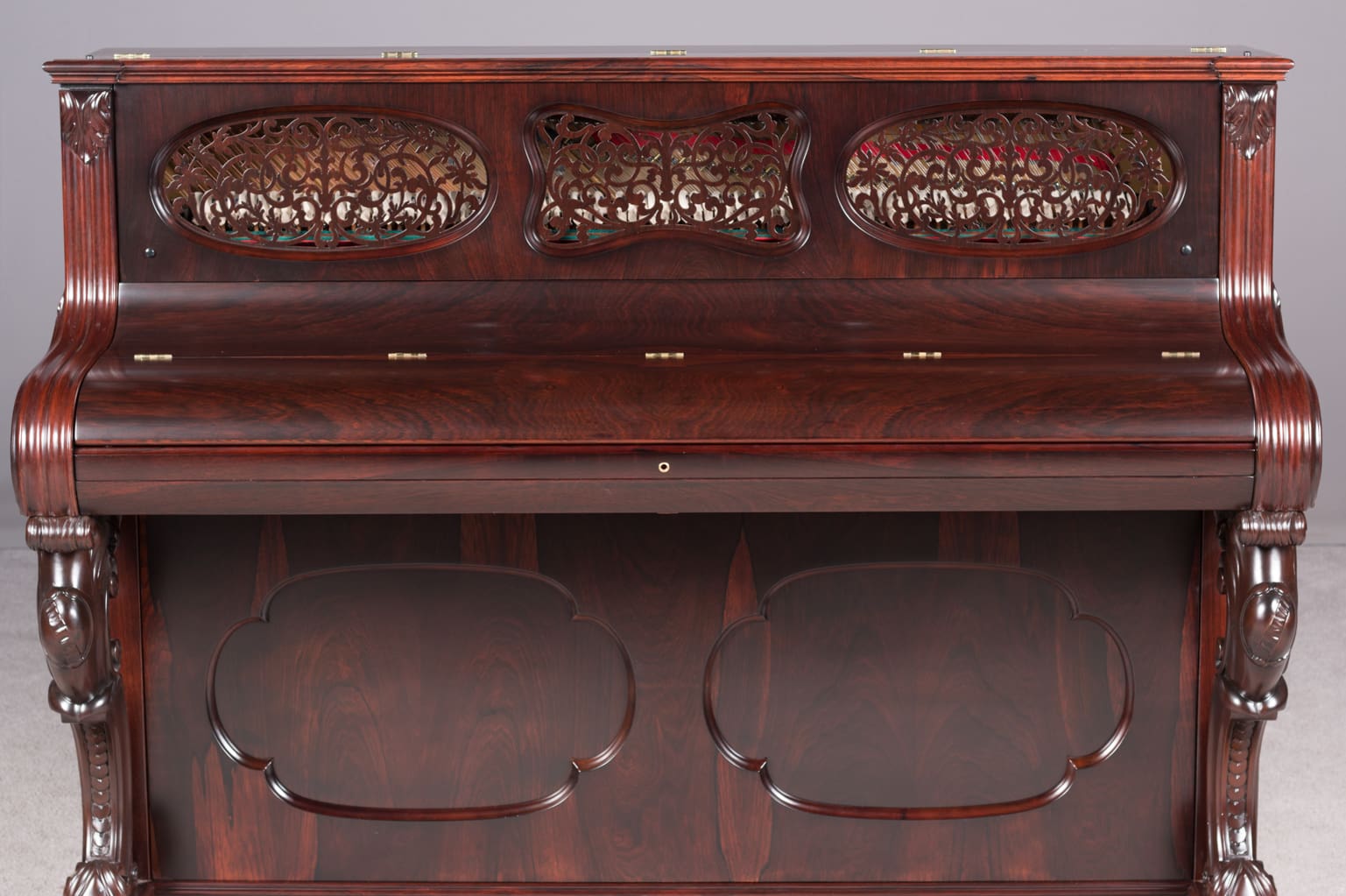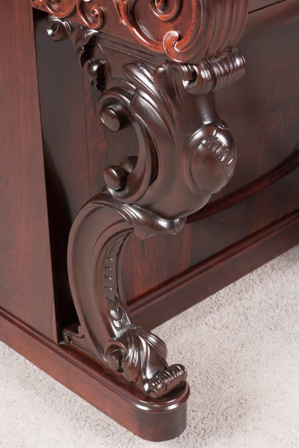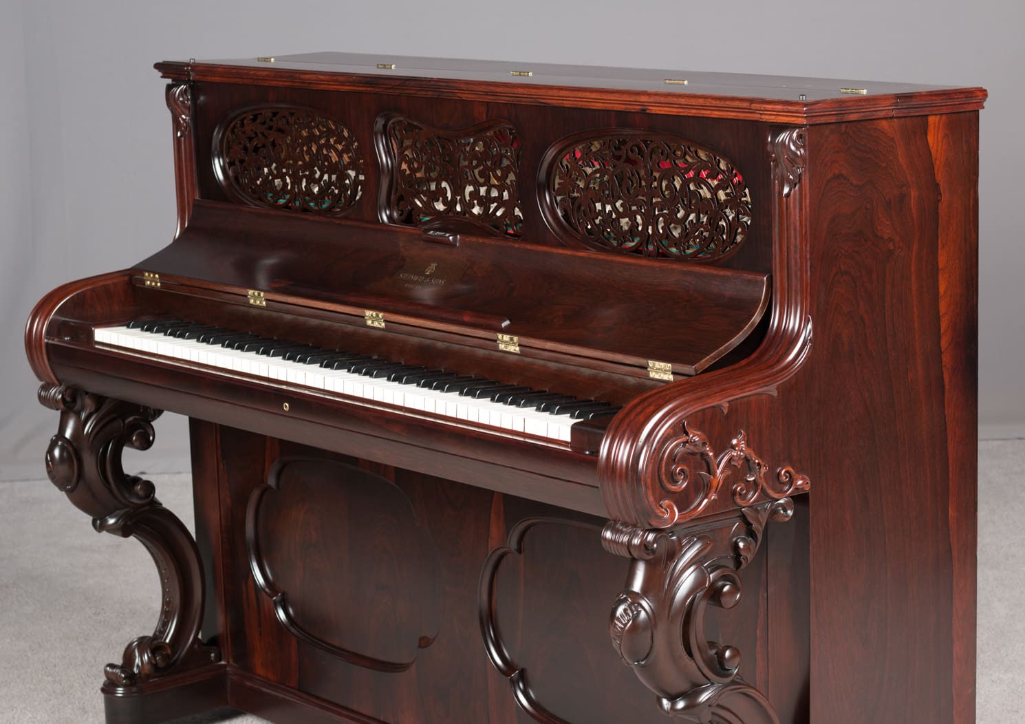 This beautiful instrument is made of endangered Brazilian Rosewood and is of the Rococo Victorian style. Note the extensively carved legs, moldings and trim. Only the finest Victorian parlor would have been privileged to house such an exquisite instrument!