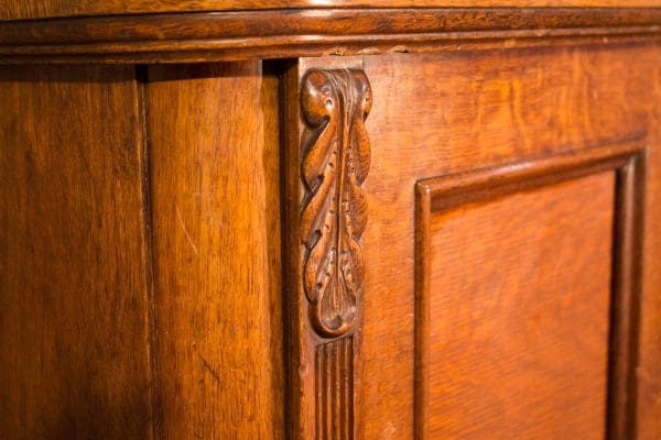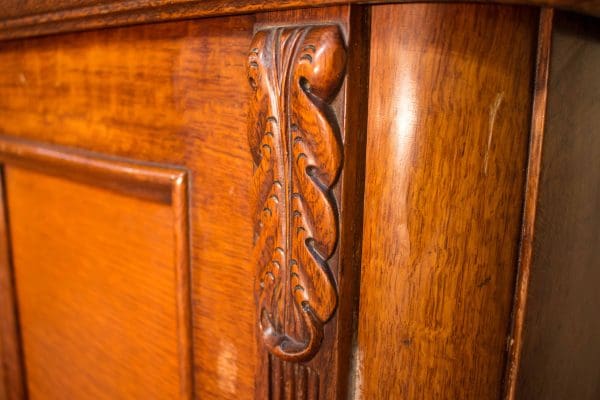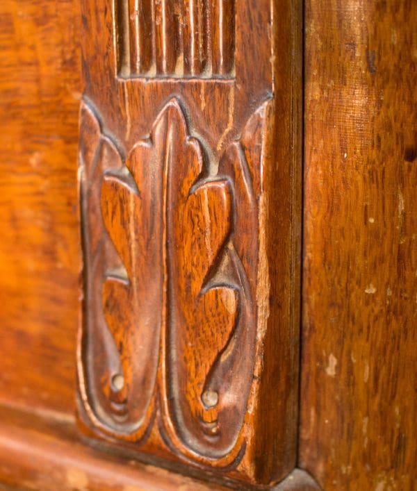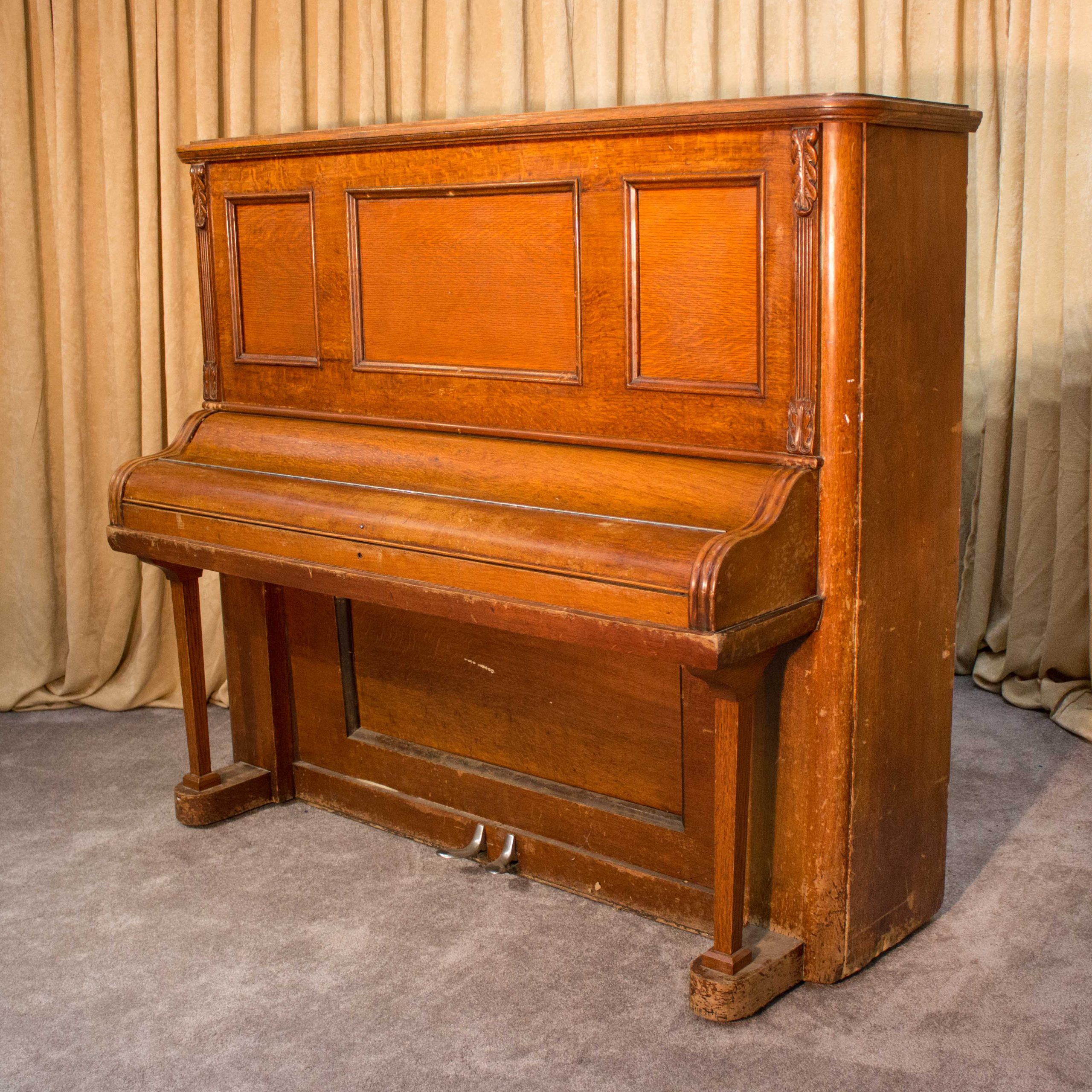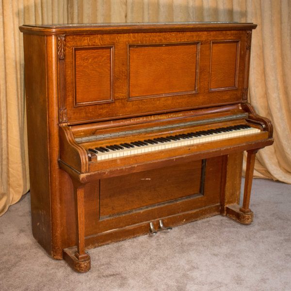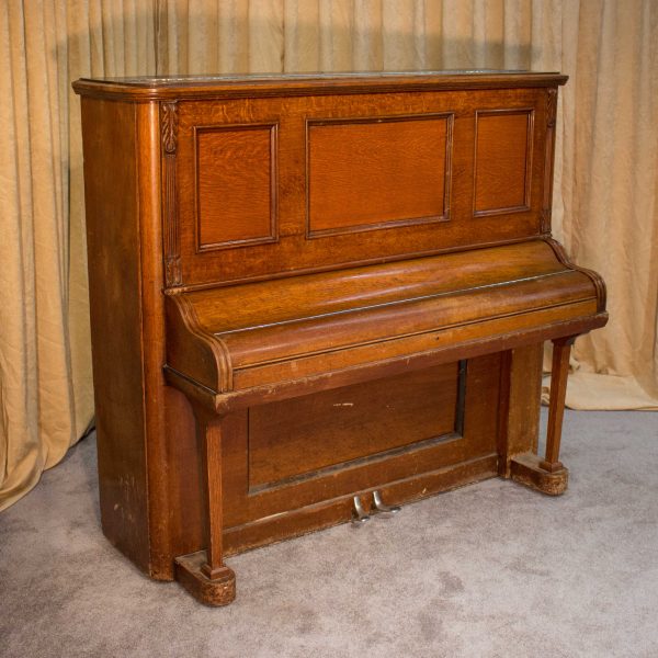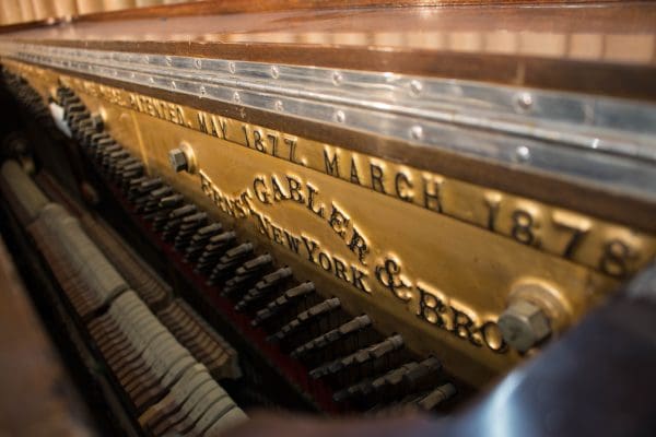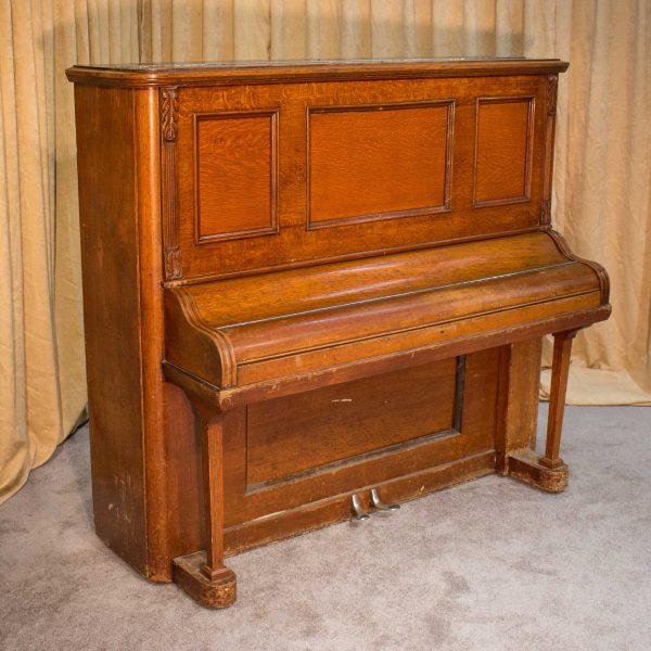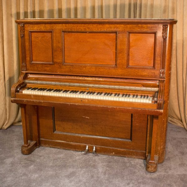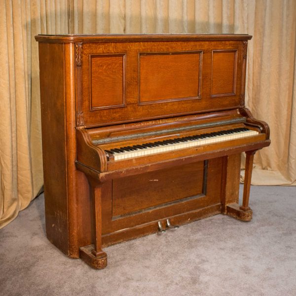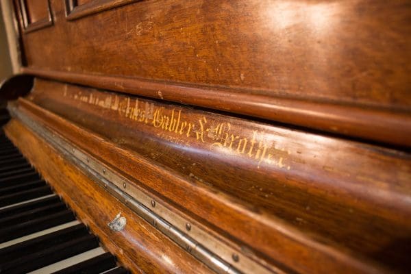 This piano was built by the prestigious Ernest Gabler & Brother Piano Company in 1893. During the 19th Century, the Gabler firm was known for building extravagant and expensive pianos, including square, grand and uprights style pianos. The beautiful quartersawn oak cabinet was built by craftsmen employed by this once flourishing piano manufacturer. The Eastlake Victorian style cabinet is a prime example of the firm’s attention to quality and design during the late 1800’s.