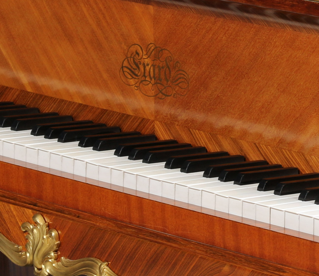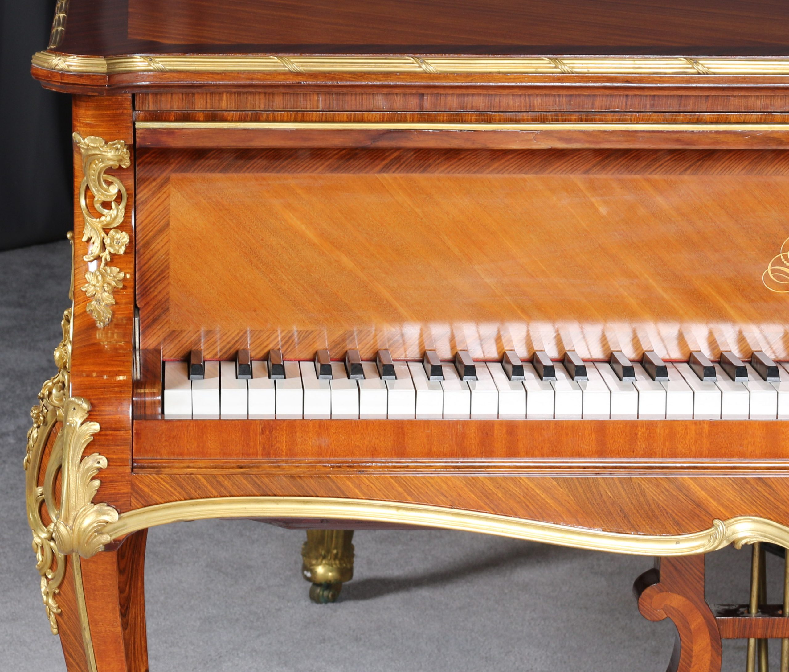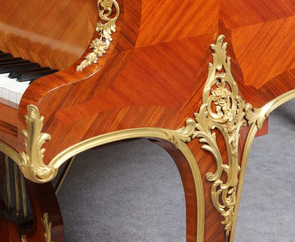 This lovely French Baroque style piano was built by the firm of Sebastian Erard of Paris in the French Baroque Style with brass Ormolu accents.