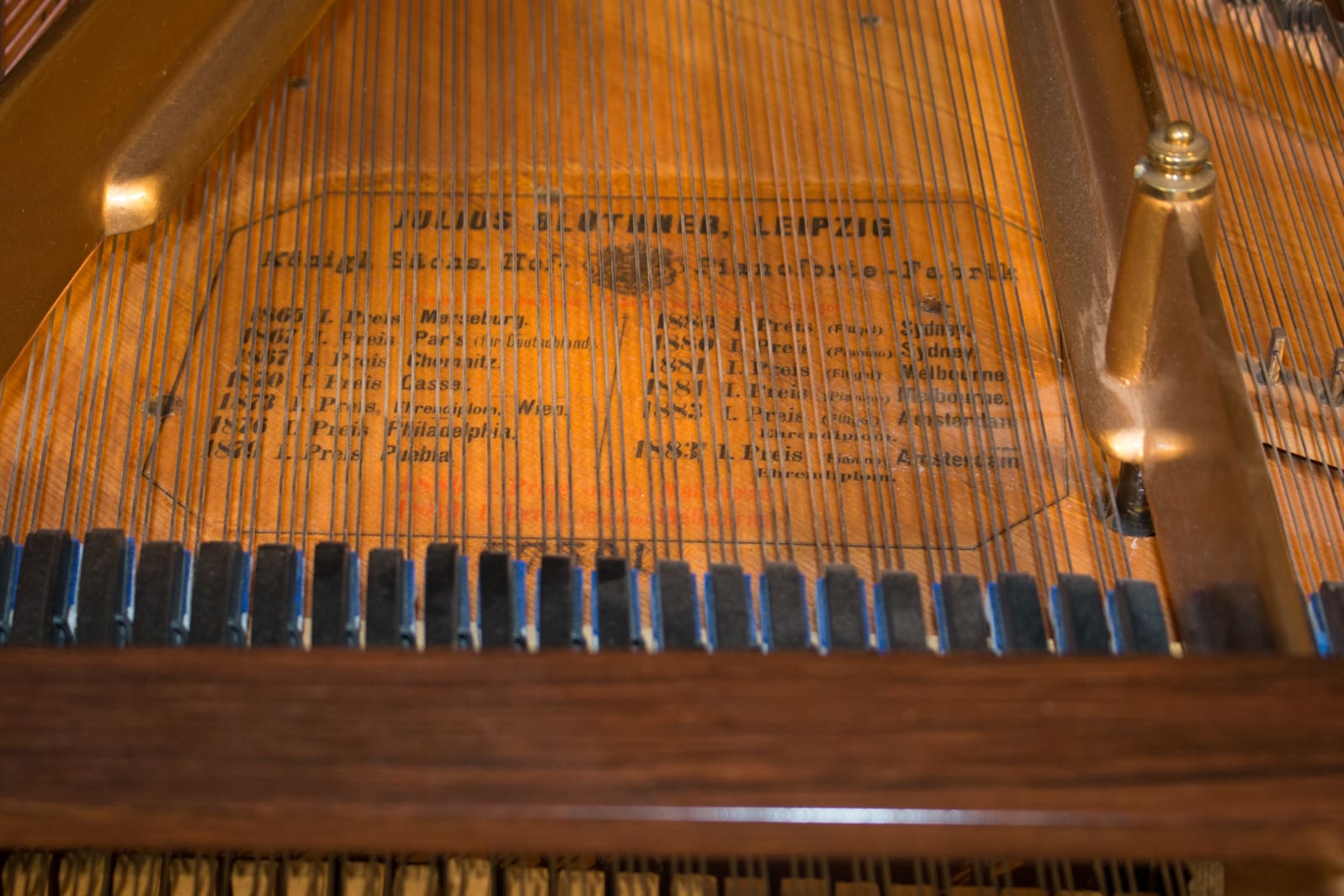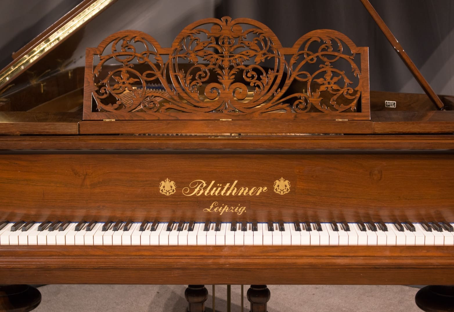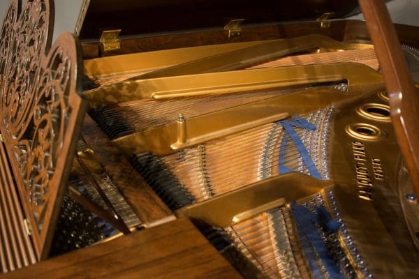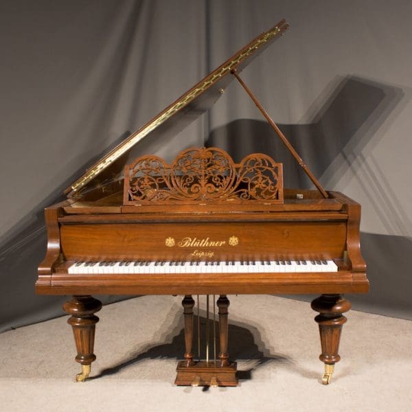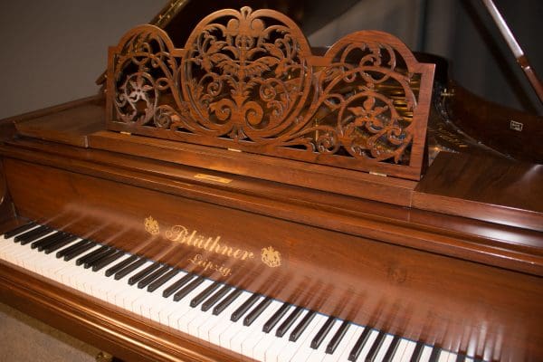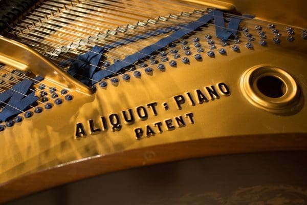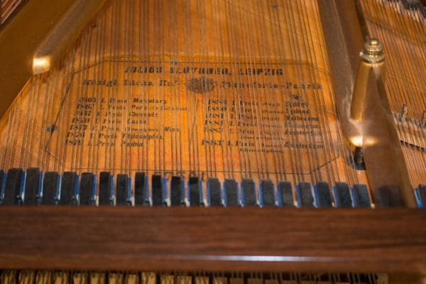 Bluthner’s patented “Aliquot” system used extra strings to vibrate sympathetically in order to create a uniquely warm, rich tonal quality