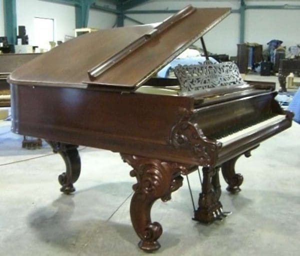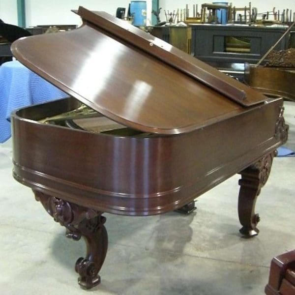 DEPOSITS: The restoration of this instrument has not been completed. A 30% deposit is required on instruments pending restoration. This deposit holds the instrument and keeps it from being offered to other clients, and it also makes that piano’s restoration a priority. Once we complete the restoration, we invite the client to visit our shop to see and hear the piano. If the client is unable to visit our shop, we will send professional photos and videos of the piano for review. The client then has the option of paying the balance and purchasing the piano, transferring their balance to another piano in our shop, or getting a full refund for their deposit. The client is never at risk.