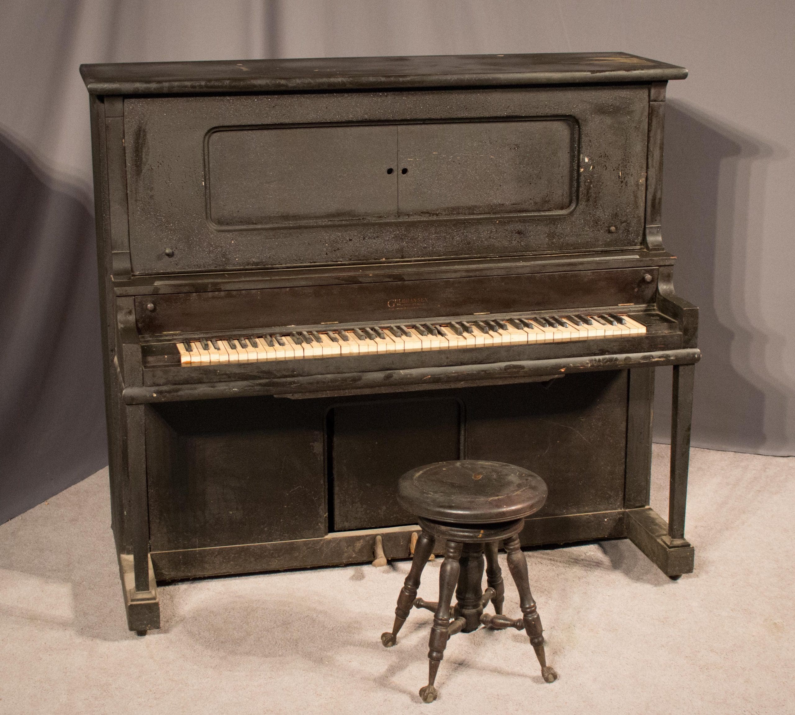 The antique claw-foot piano stool is included.