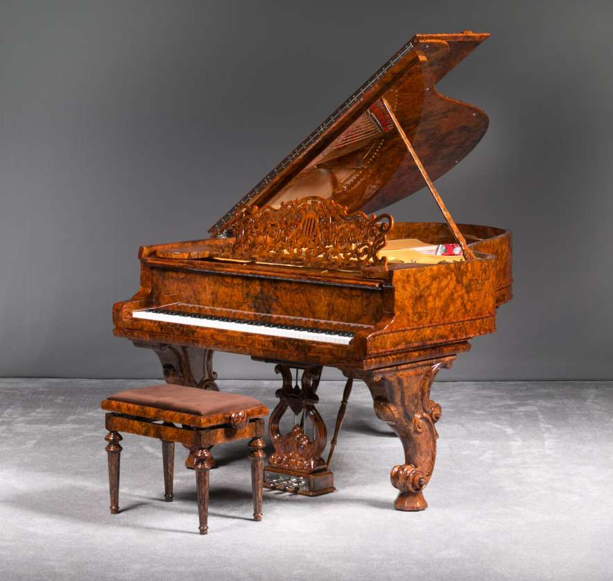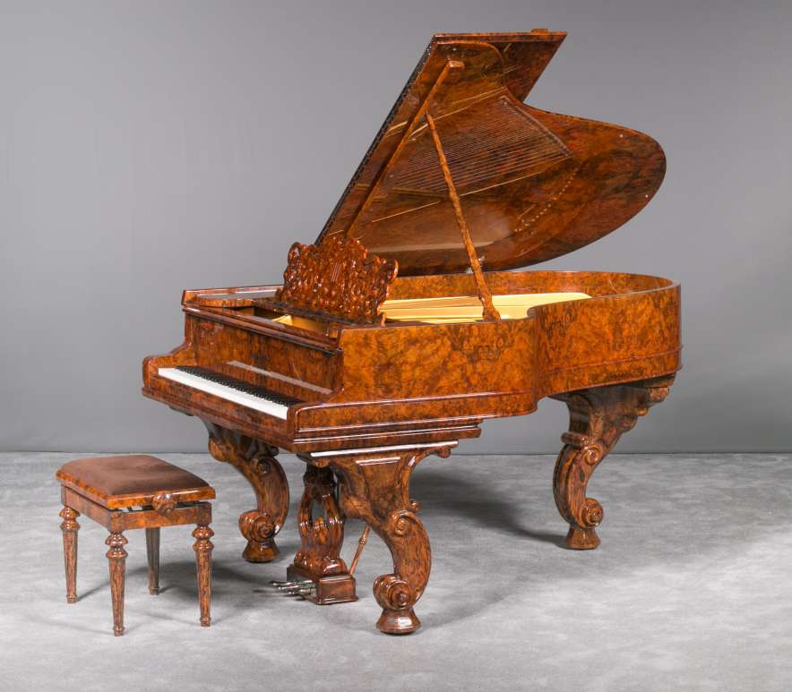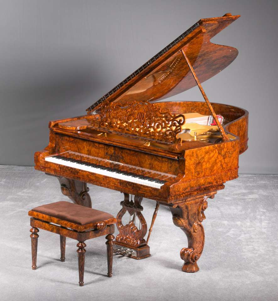 Hamburg Model A Steinway Exotic Burl Wood Rococo Style Grand Piano