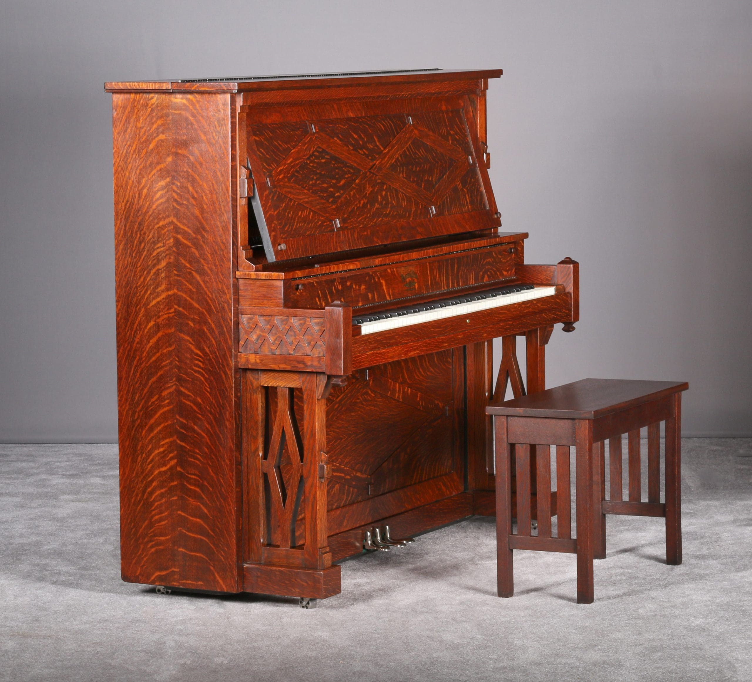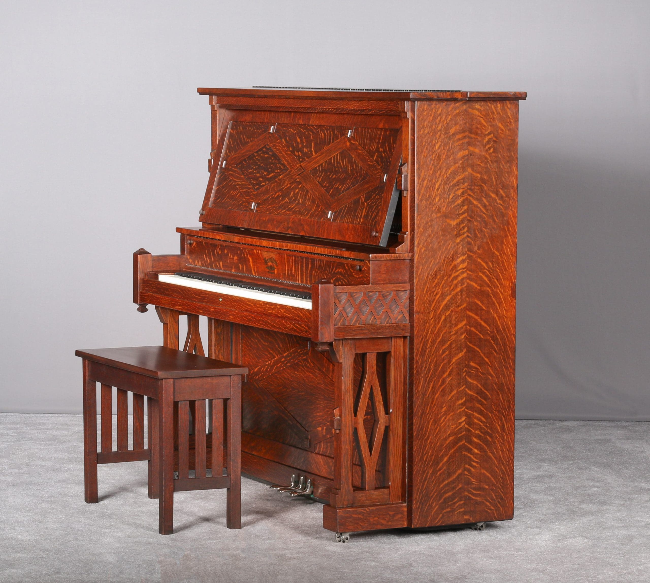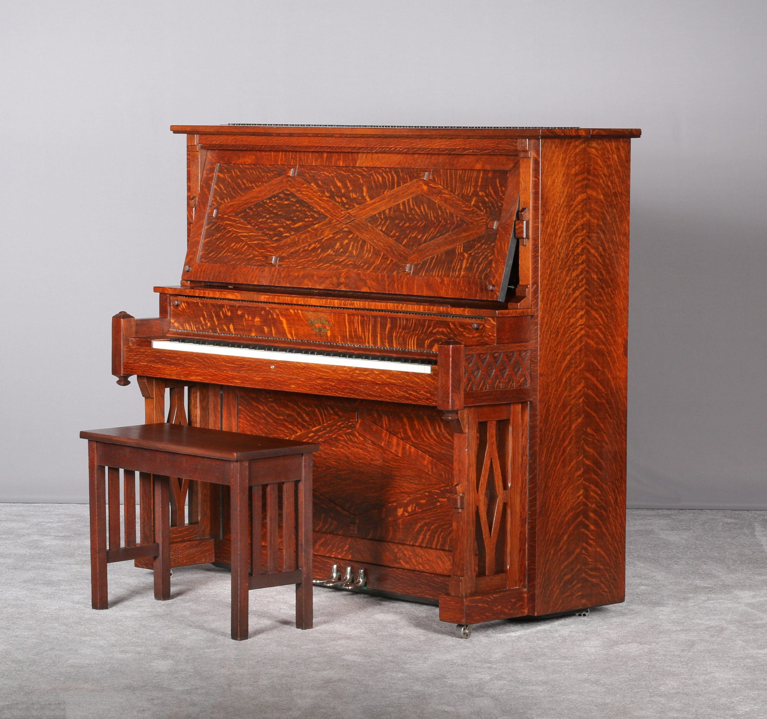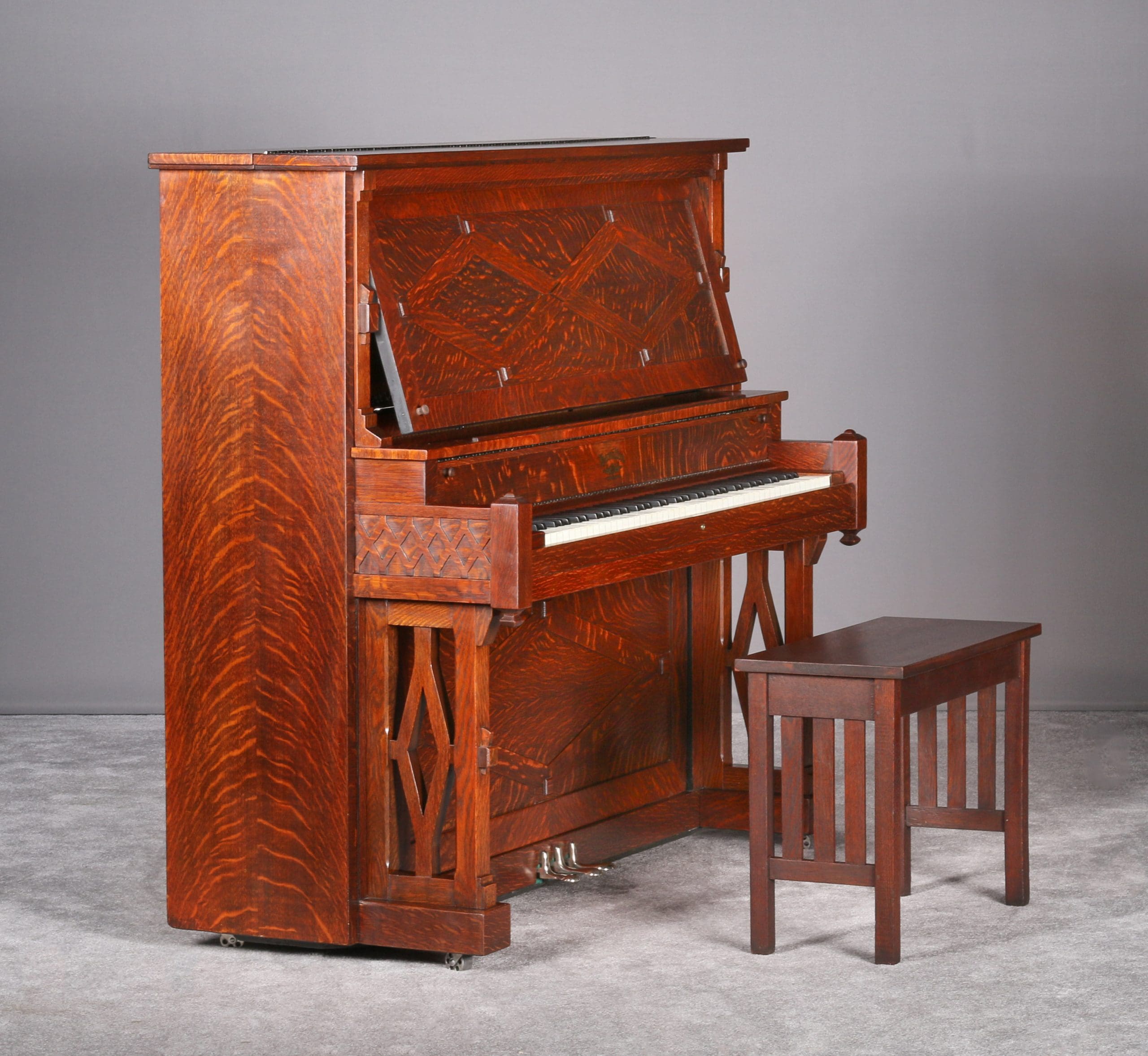 Note: As founder of The Antique Piano Shop, I have personally collected Mission / Arts & Crafts style pianos for over 25 years. I have a great passion for anything Mission / Arts & Crafts, including Craftsman homes, furniture, and accessories. If you are a true Arts & Crafts enthusiast, you will appreciate how impossible it is to find true Arts & Crafts / Mission style pianos in today’s market. Nearly three decades of collecting and preserving these “impossible to find” instruments has allowed me the opportunity to present the largest collection of true Mission / Arts & Crafts style instruments anywhere in the world.