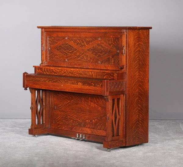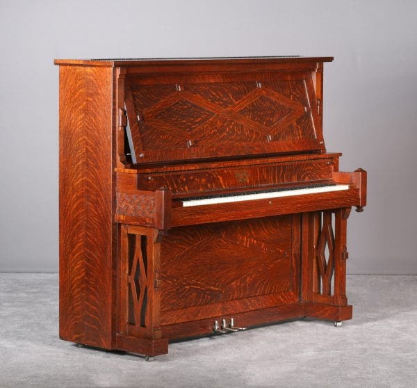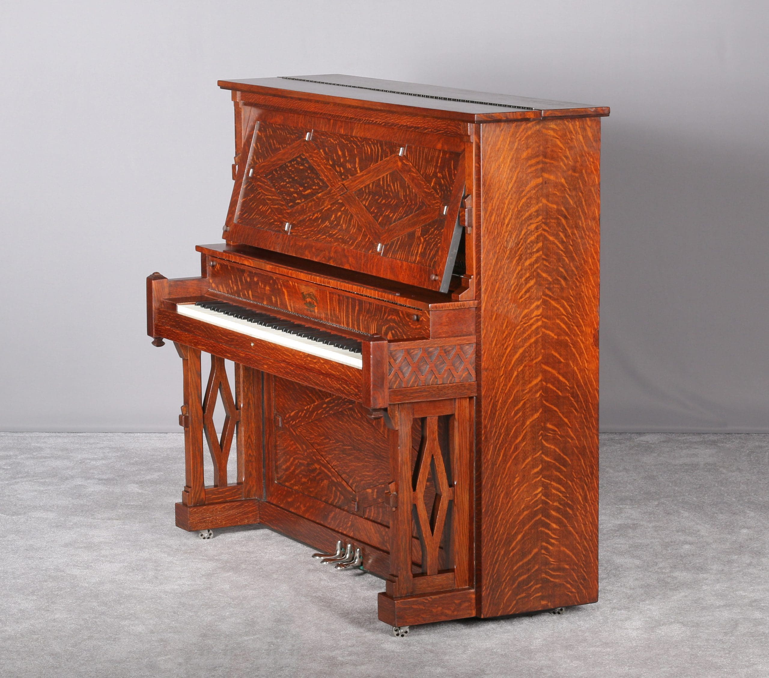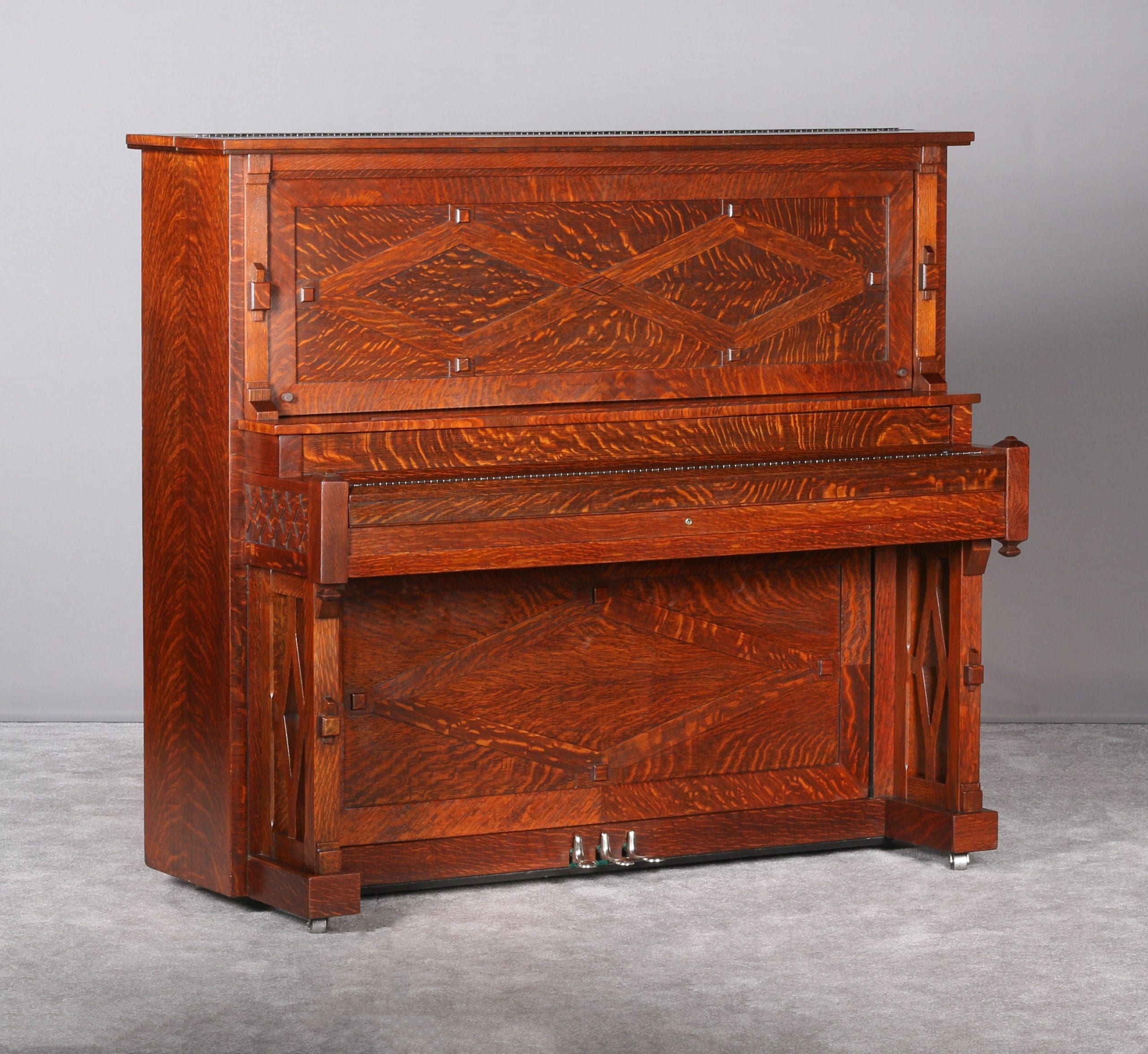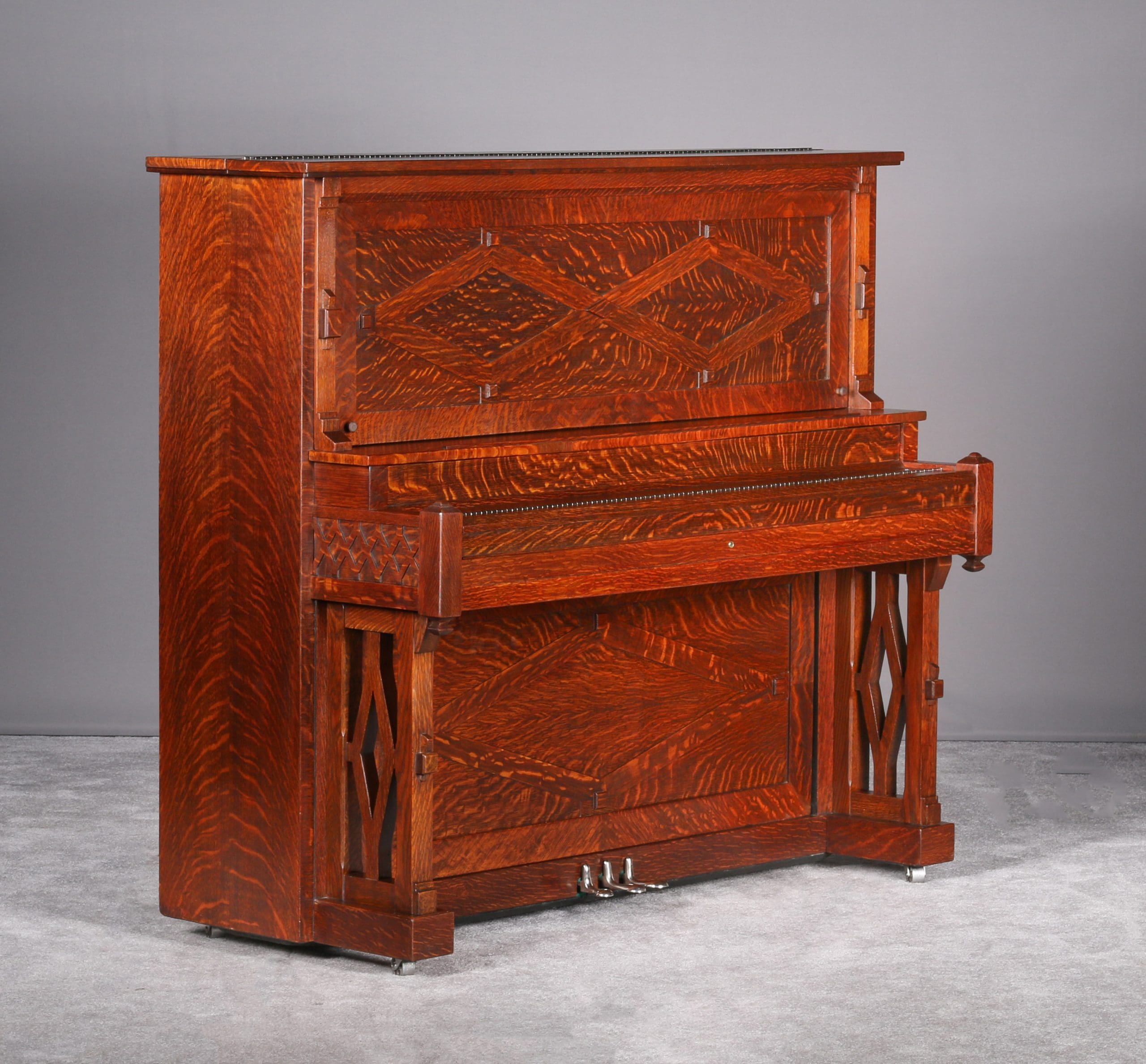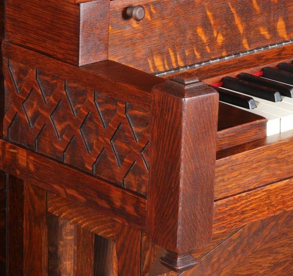 Note: As founder of The Antique Piano Shop, I have personally collected Mission / Arts & Crafts style pianos for over 25 years. I have a great passion for anything Mission / Arts & Crafts, including Craftsman homes, furniture, and accessories. If you are a true Arts & Crafts enthusiast, you will appreciate how impossible it is to find true Arts & Crafts / Mission style pianos in today’s market. Nearly three decades of collecting and preserving these “impossible to find” instruments has allowed me the opportunity to present the largest collection of true Mission / Arts & Crafts style instruments anywhere in the world.