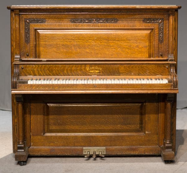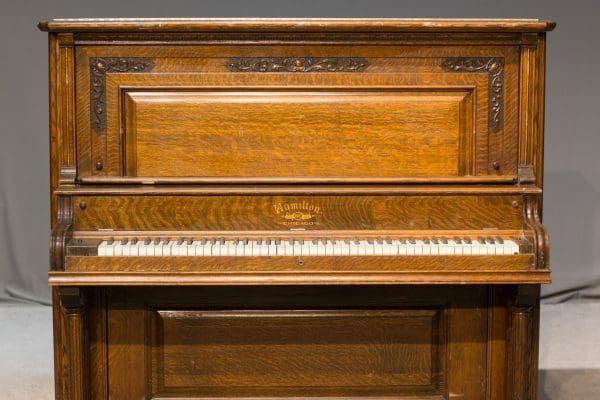 The Hamilton Piano Company was a substantial part of the famous Baldwin Piano & Organ Company. Named after the founder, Dwight “Hamilton” Baldwin, the Hamilton brand name was one of the few American piano brand names to be built consistently for over a century. Hamilton upright pianos were considered one of the finest American made upright pianos during the mid to late 20th Century. Like the later instruments, these early Victorian Hamilton upright pianos were substantially well made, high quality instruments.