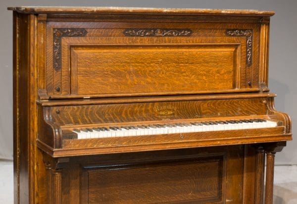 DEPOSITS: The restoration of this instrument has not been completed. A 30% deposit is required on instruments pending restoration. This deposit holds the instrument and keeps it from being offered to other clients, and it also makes that piano’s restoration a priority. Once we complete the restoration, we invite the client to visit our shop to see and hear the piano. If the client is unable to visit our shop, we will send professional photos and videos of the piano for review. The client then has the option of paying the balance and purchasing the piano, transferring their balance to another piano in our shop, or getting a full refund for their deposit. The client is never at risk.
