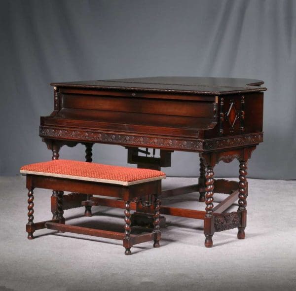 This lovely piano is built in the rare 17th Century Jacobean Style with Spanish influences