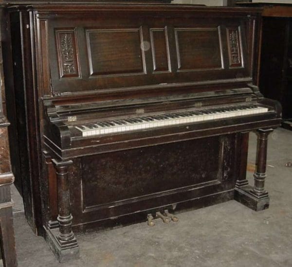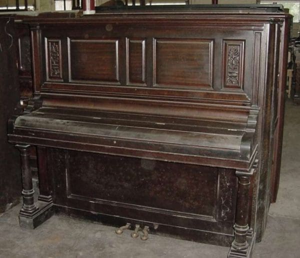 DEPOSITS: The restoration of this instrument has not been completed. A 30% deposit is required on instruments pending restoration. This deposit holds the instrument and keeps it from being offered to other clients, and it also makes that piano’s restoration a priority. Once we complete the restoration, we invite the client to visit our shop to see and hear the piano. If the client is unable to visit our shop, we will send professional photos and videos of the piano for review. The client then has the option of paying the balance and purchasing the piano, transferring their balance to another piano in our shop, or getting a full refund for their deposit. The client is never at risk.