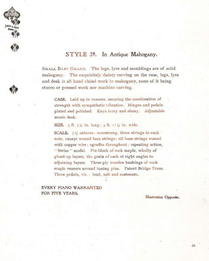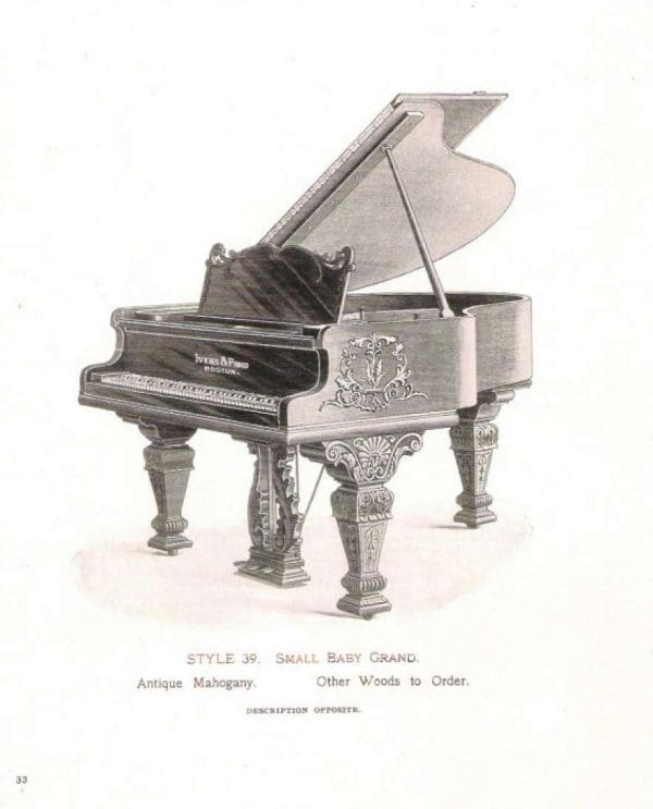 These turn-of-the-century Ivers & Pond grand pianos are consistently some of the finest pianos we see come through our shop. Their tone quality and construction is superior in every way.