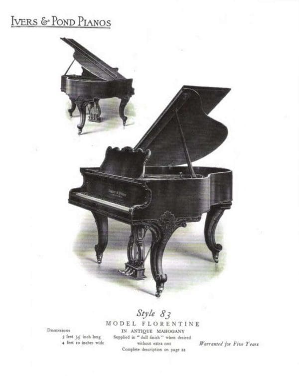 These early 20th Century Ivers & Pond grand pianos are consistently some of the finest pianos we see come through our shop. Their tone quality and construction is superior in every way.