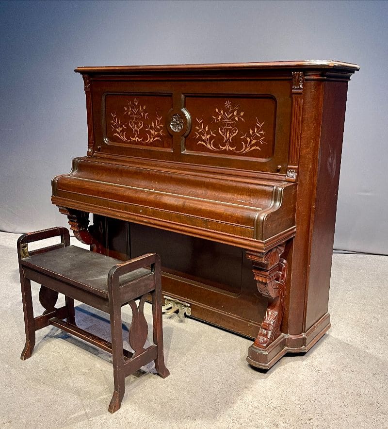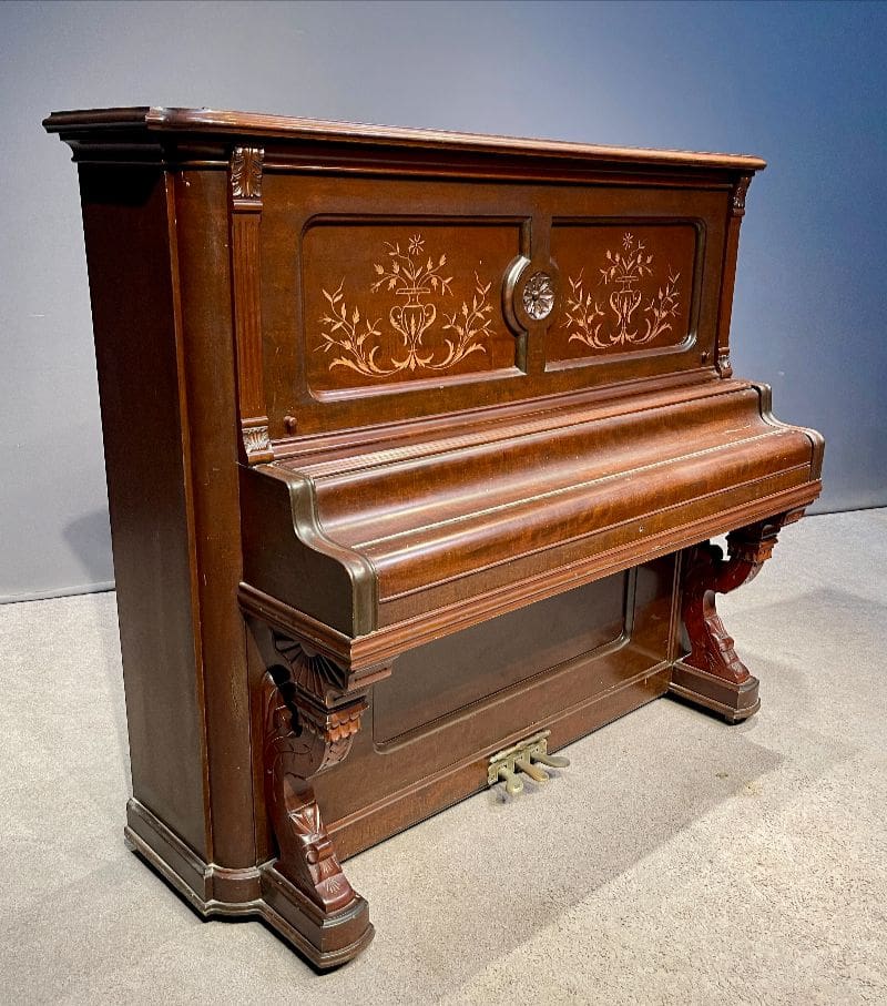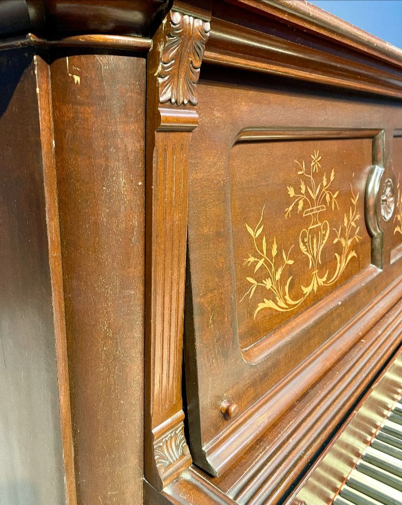 This impressive full-size “upright grand” will be meticulously restored with historical accuracy in mind, returning both its majestic appearance and its powerful tone to the glory of its original era. Once complete, it will deliver a rich, resonant sound and a commanding musical presence.